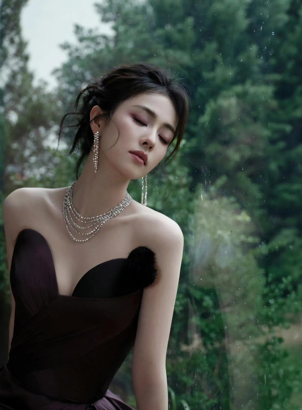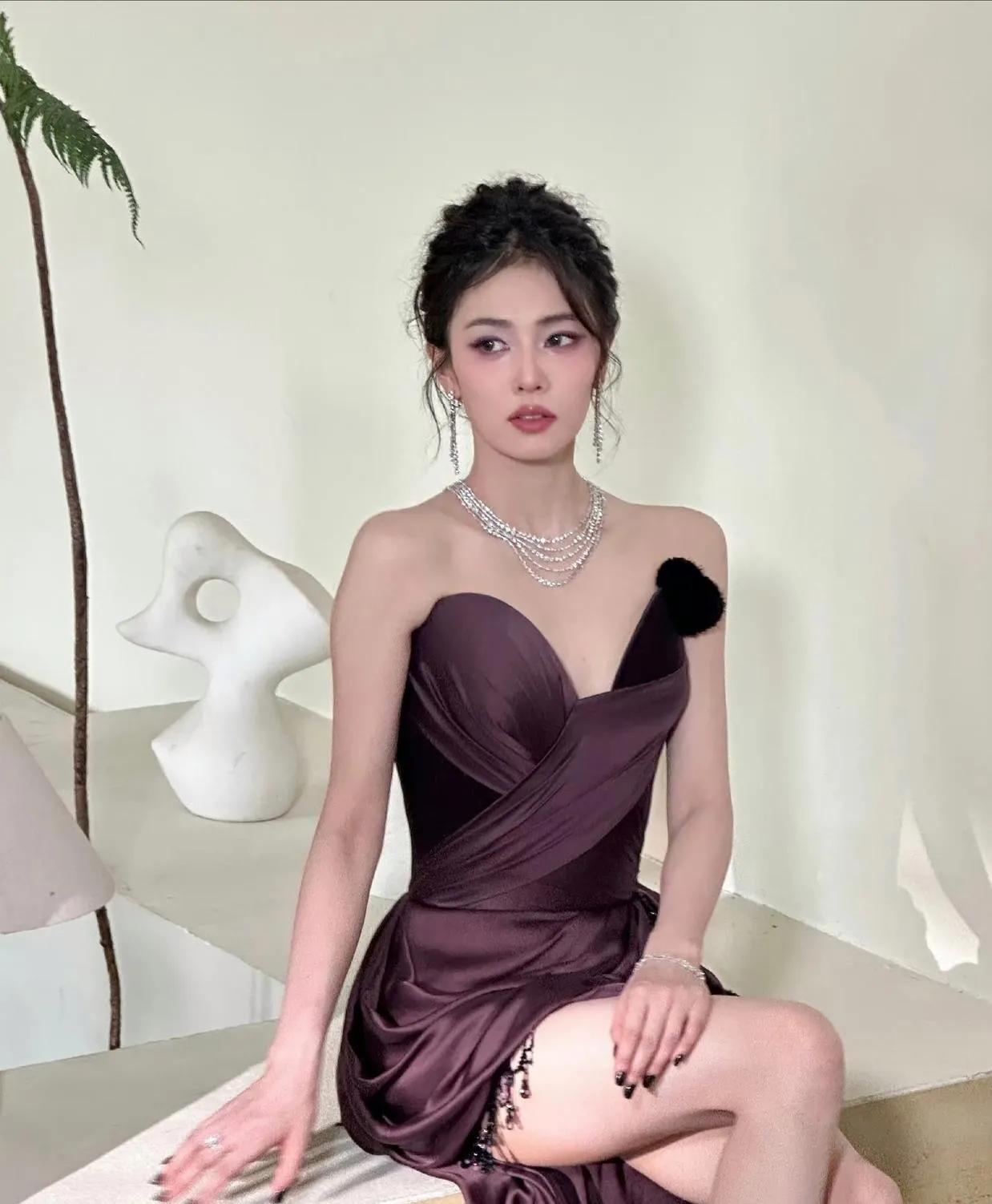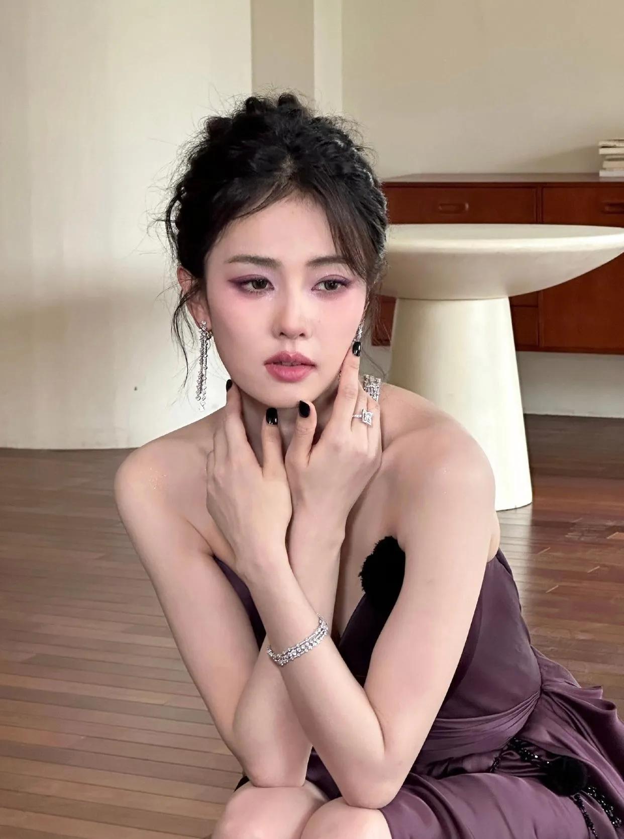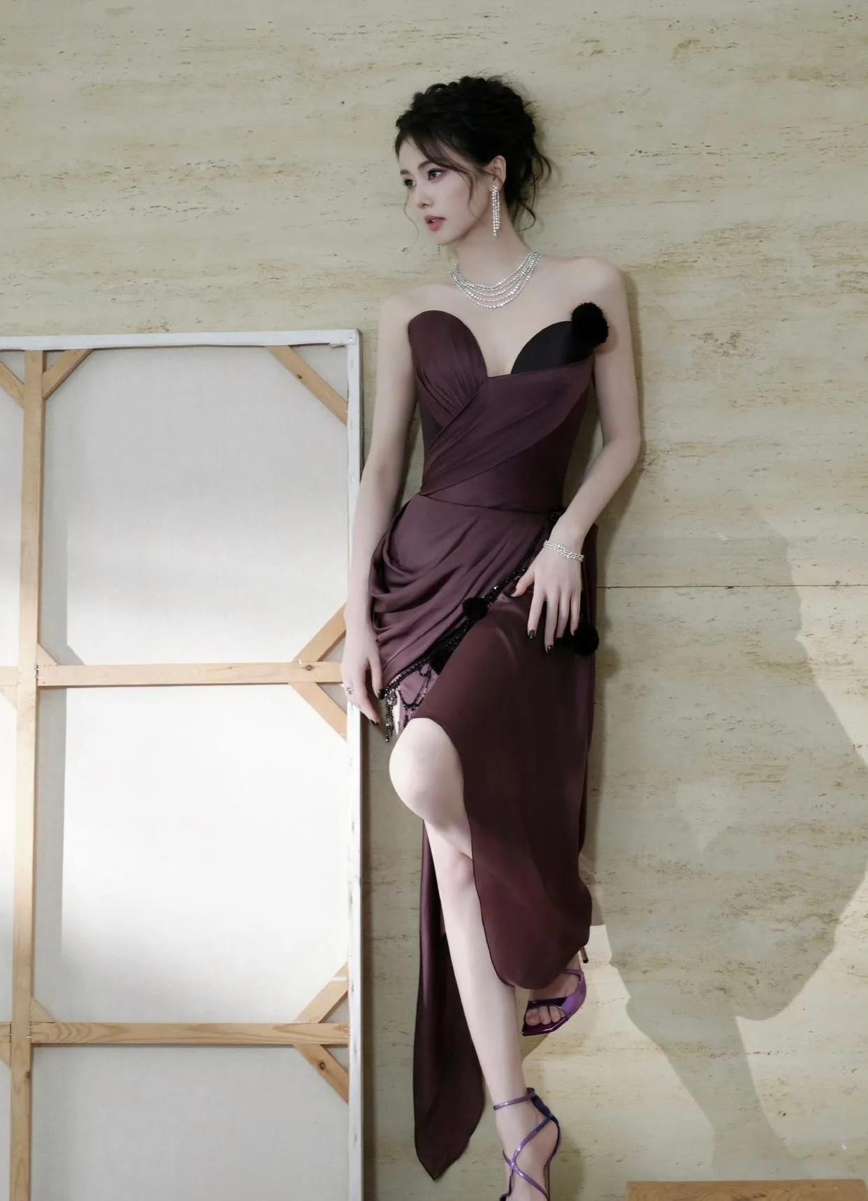 白鹿抹胸长裙造型 优雅又性感 白鹿这身深紫色抹胸长裙太绝了!缎面材质高级感拉满,设计独特又有小心机,搭配钻石首饰和紫色高跟鞋,优雅中带着性感,每一张都美到失语~