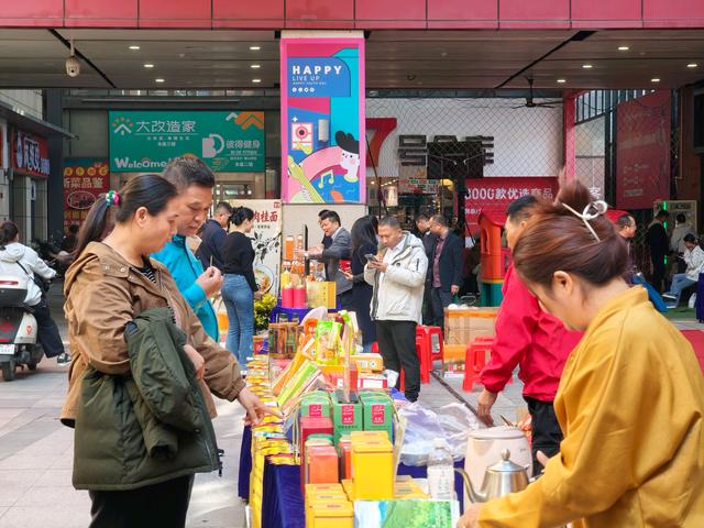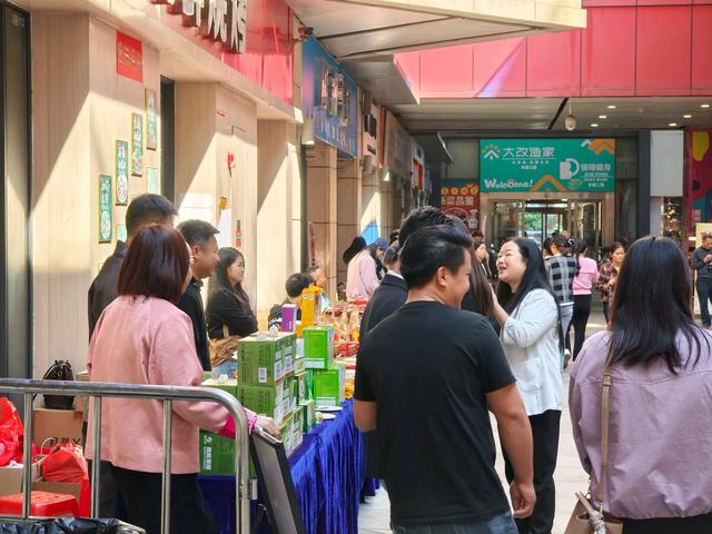 集市现场,琳琅满目的特色商品吸引了众多佛山市民驻足品尝选购。罗定市的肉桂面香气浓郁,韧劲十足;云城区的非遗炒米饼酥脆香甜,承载着传统技艺;郁南县的黄皮饼风味独特,果香怡人;新兴县的禅茶清净醇和,韵味悠长;云安区的咖啡品质上乘,香气醇厚……此外,还有众多其他种类的优质农副产品集体亮相,充分展现了云浮作为生态农业发展宝地的丰富物产和深厚底蕴。展位前人流不断,商家热情推介,市民或驻足询问,或现场品鉴,更是直接选购,现场气氛热烈。