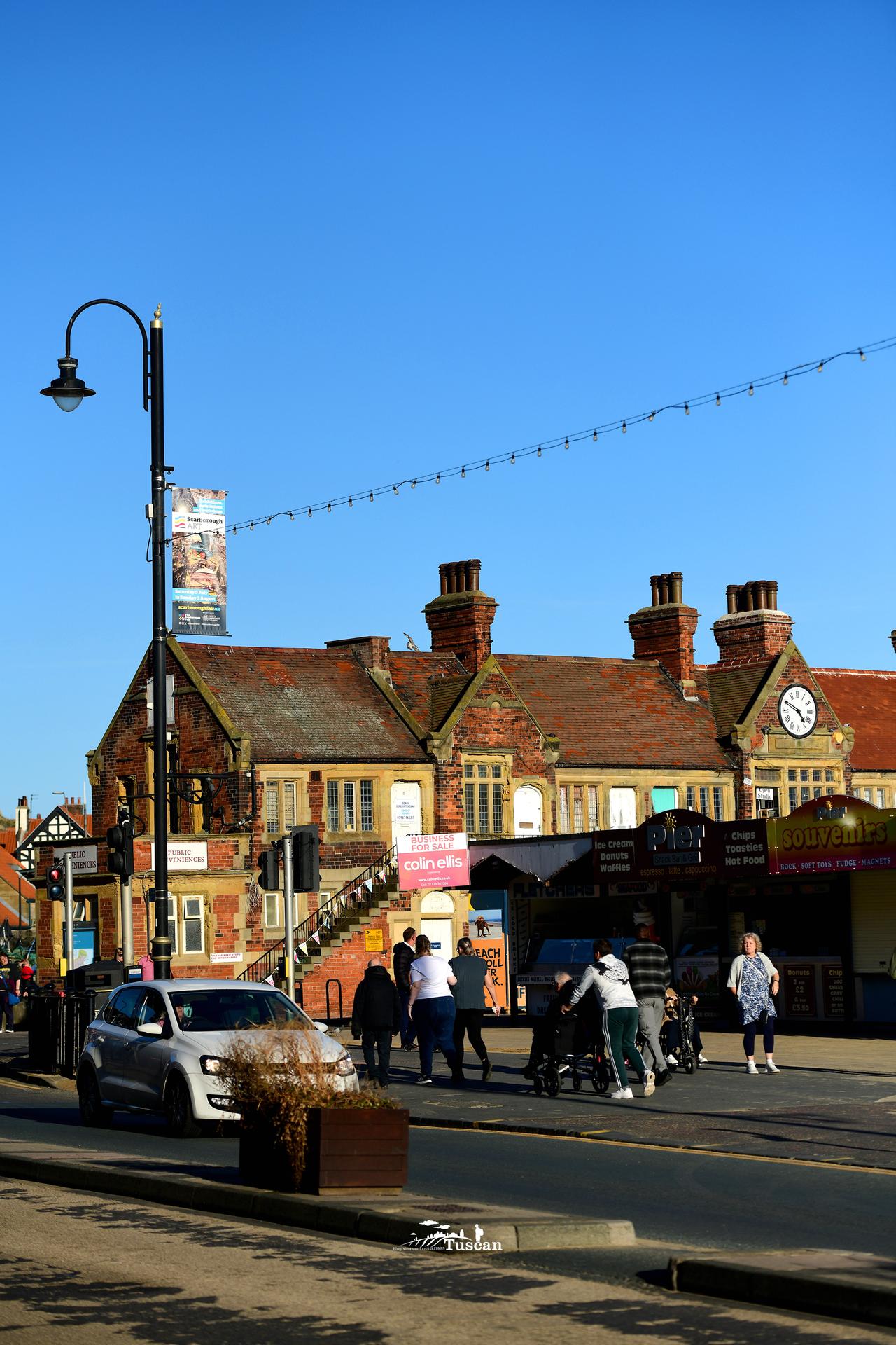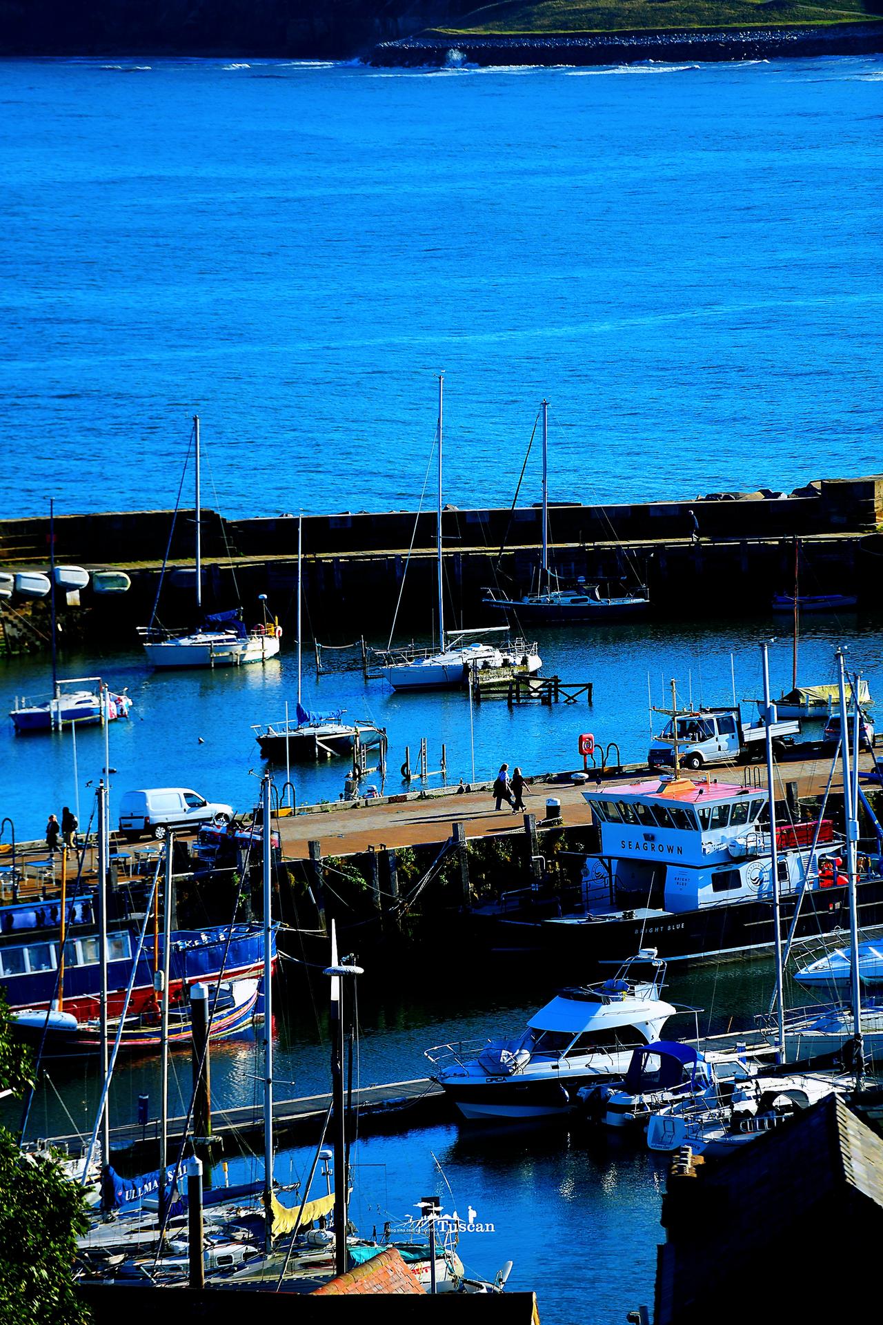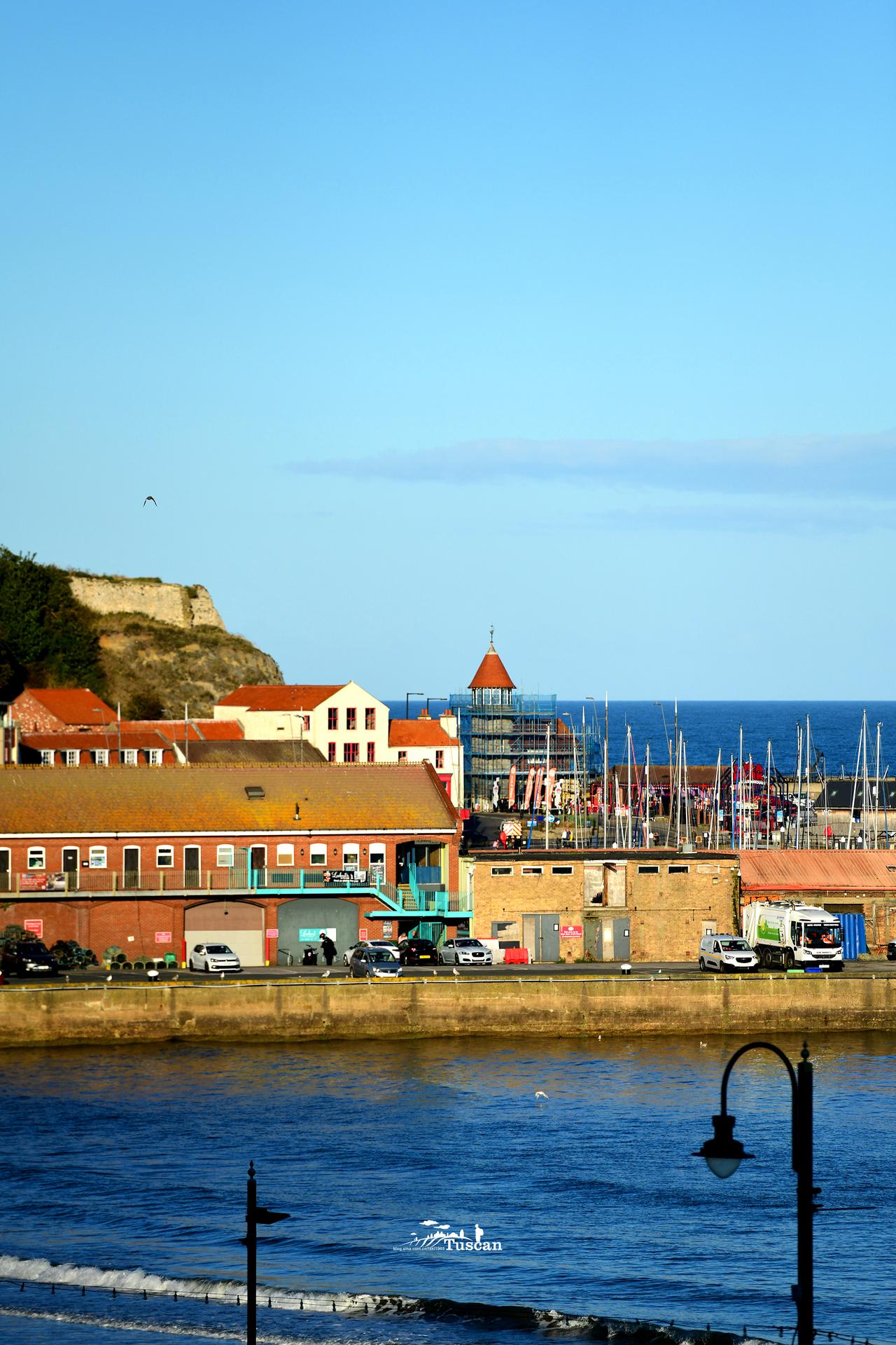 Are you going to Scarborough Fair? 您是去斯卡布罗集市吗? Parsley, sage, rosemary & thyme 芫荽,鼠尾草,迷迭香和百里香 Remember me to one who lives there 代我向那里的一个人问好 She once was a true love of mine. 她曾经是我真心深爱的姑娘 去斯卡布罗堡的路上,我在车里循环播放的歌曲就是莎拉布莱曼这首精典的歌曲。 因为这首歌的喜欢,斯卡布罗集市也成了我特别想去的地方之一。 没去前一直以为这个集市是在一个乡村,结果到了之后才发现,斯卡布罗集市原来是在海边。 斯卡布罗集市本是由于维京人经常的登陆,作一些交换而形成的一个定期集市,在几百年的时间里,每年的秋天持续一个半月。 Jen开车累了,就呆在车里休息,阿Faye因为在这里生活了一段时间,因而非常熟悉这里的一切。我则在阿Faye带领下,沿着海岸线,一直走到这里的最高处,把整个市集最美的一面尽收眼底。