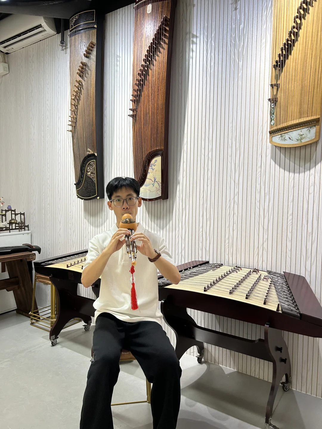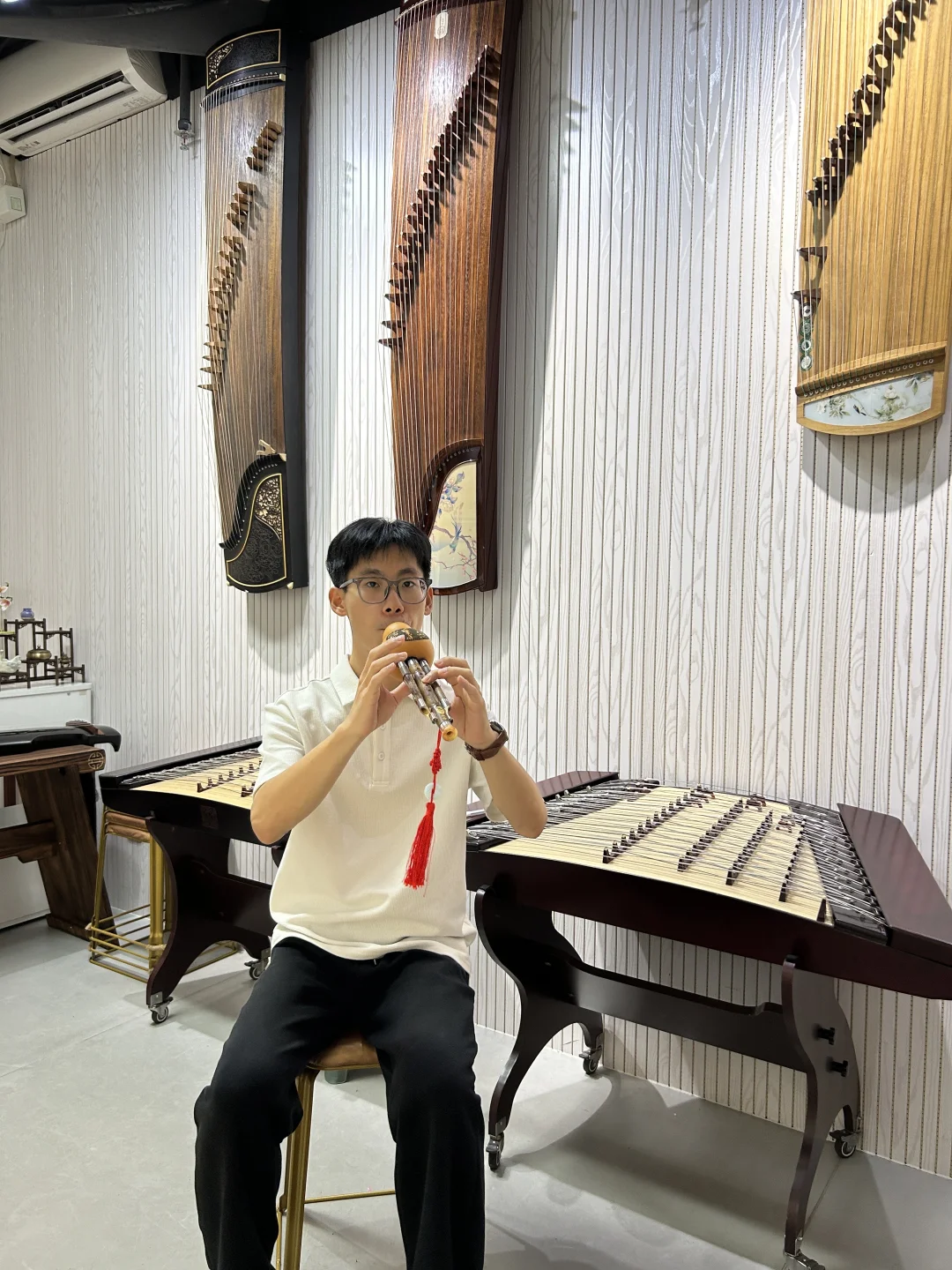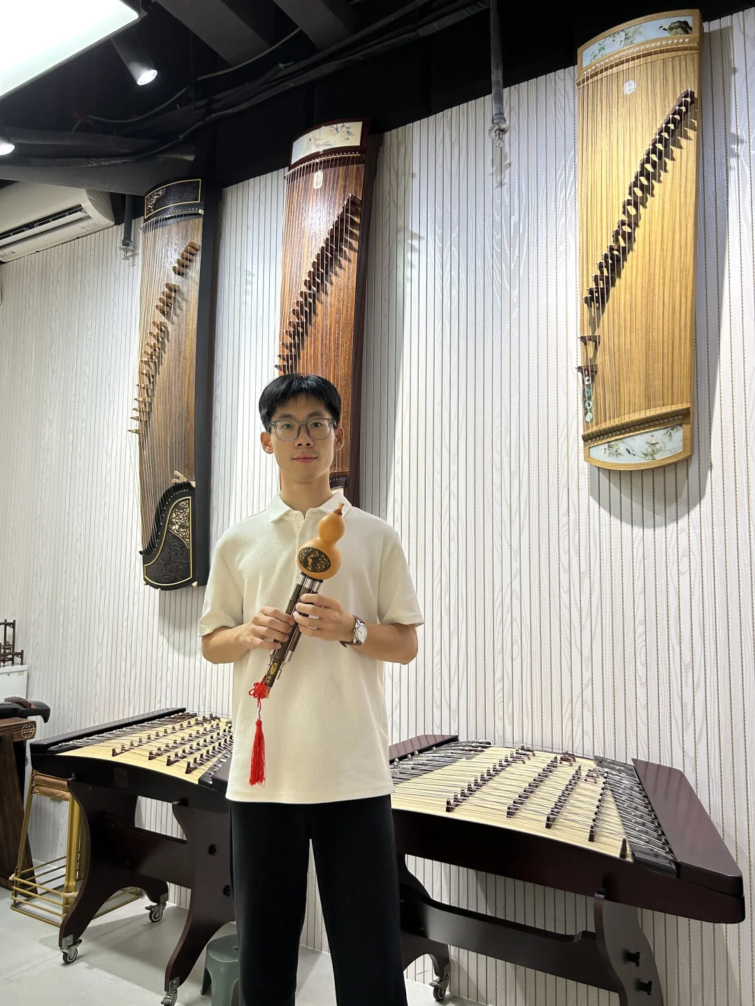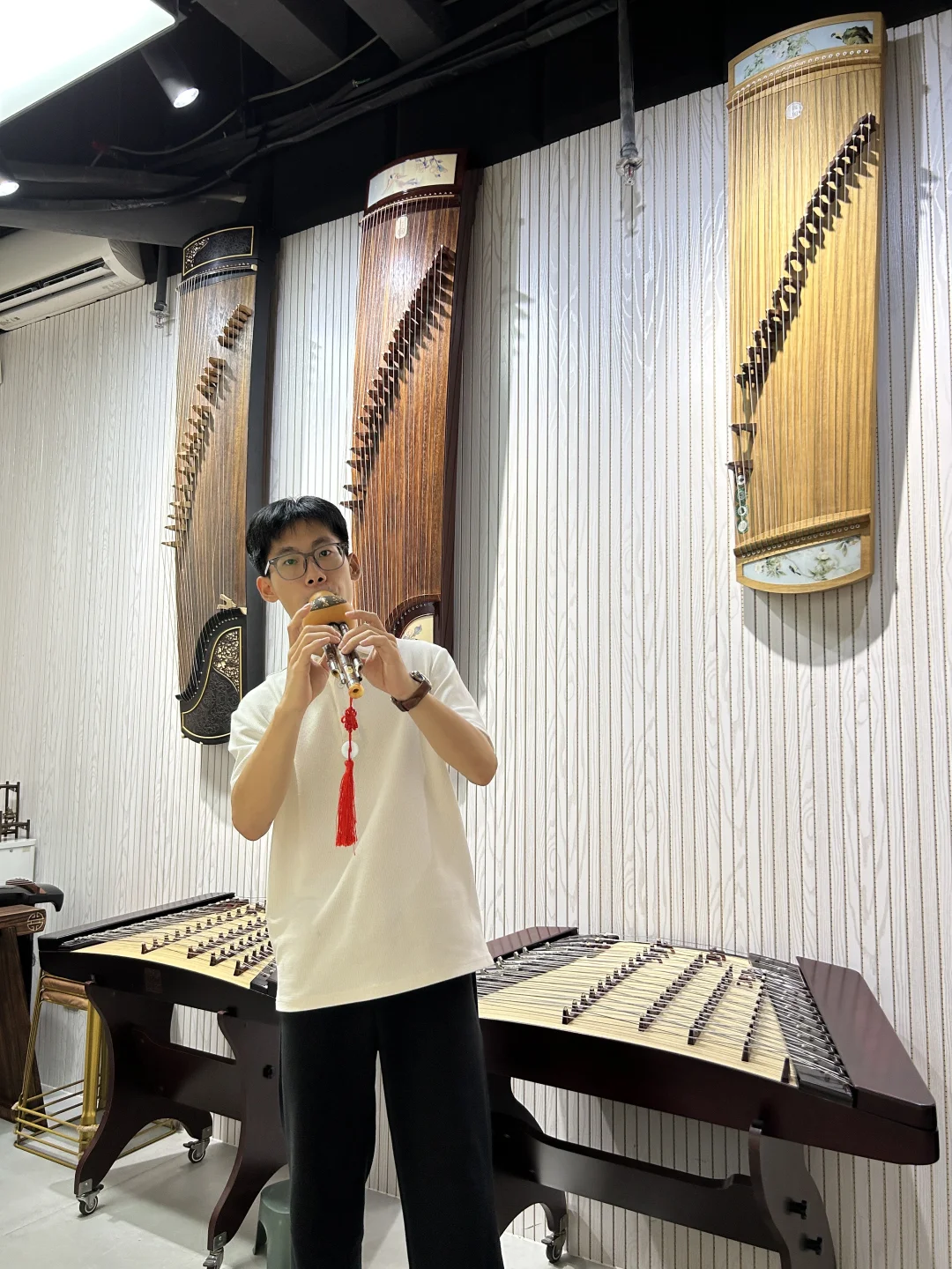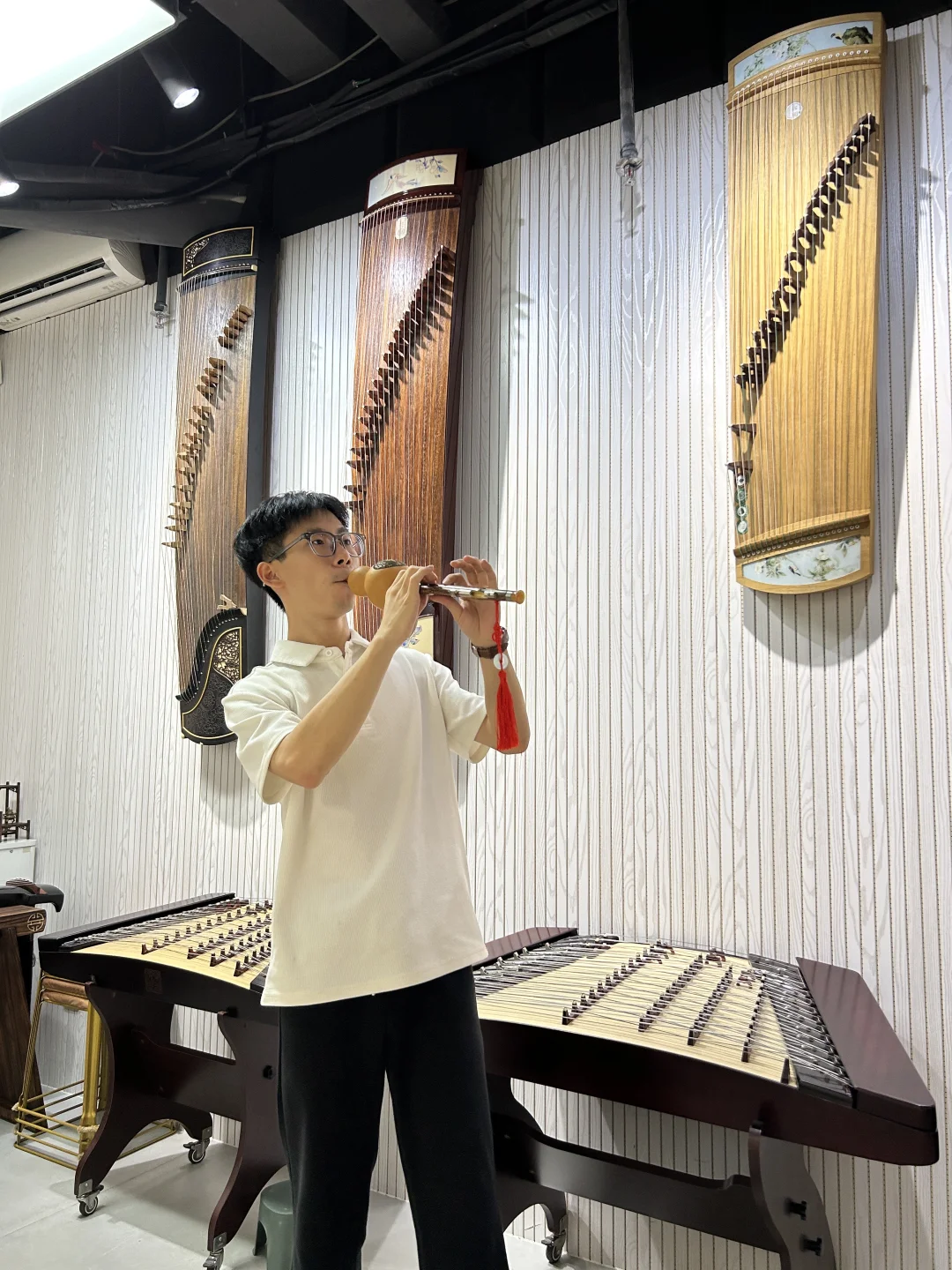 老师吹完把葫芦丝递给我,我捏着温温的竹管还挺紧张,结果按他说的“嘴型放松、轻轻送气”,居然一下就出了平稳的音!老师笑着拍了拍我:“有萨克斯基础就是不一样,气息稳多了~” 接着教我按孔的小技巧,比如无名指要贴紧竹管、换气时别耸肩,没十分钟我就摸着门道,连吹“1234”都顺溜了~