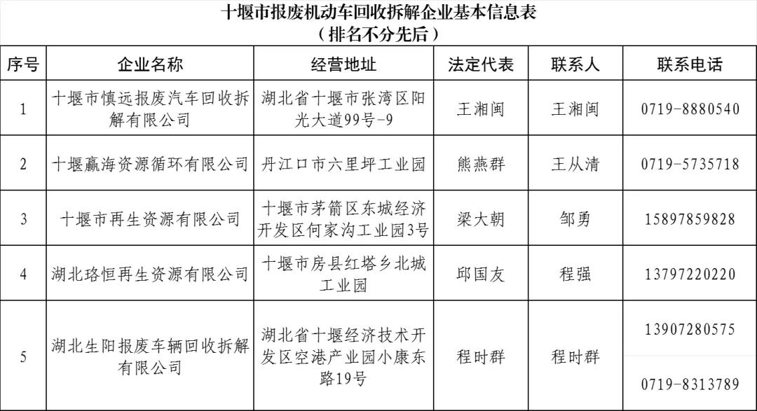 11月21日,十堰市商务局发布致全市报废机动车车主的一封信,提醒市民如需报废机动车,需到我市具有报废机动车回收拆解资质企业办理,并公布具有资质的企业名单。