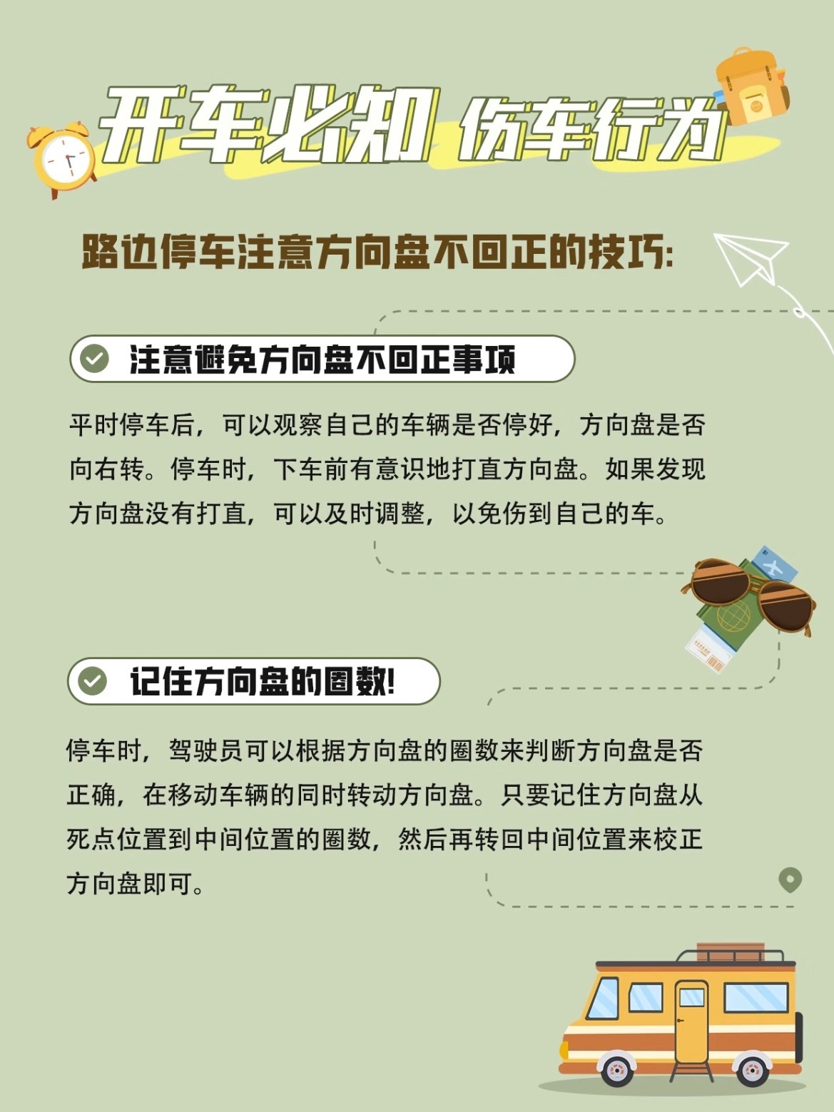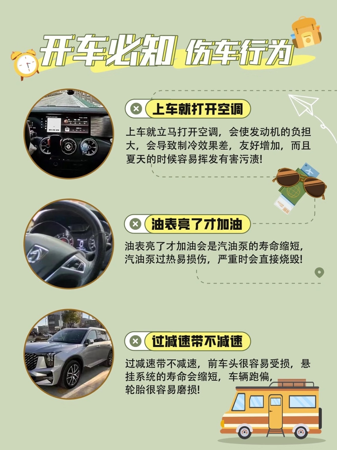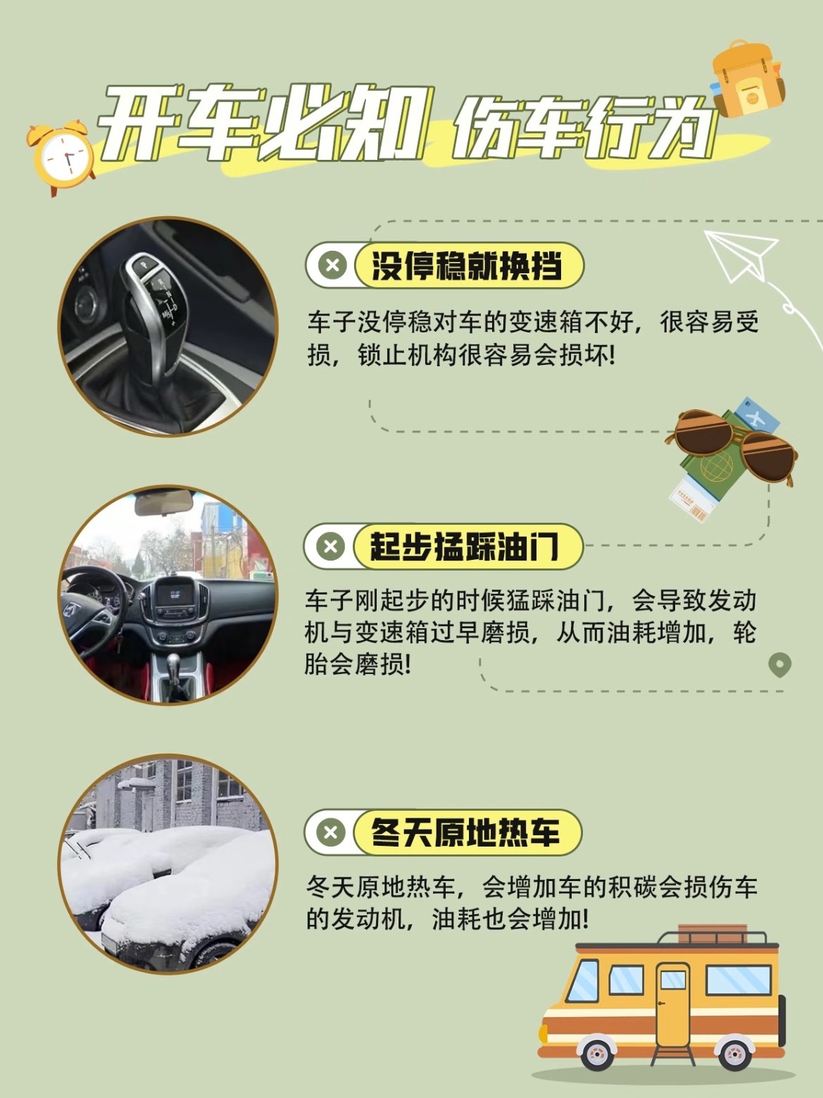 这些伤车习惯你中了几个?🚗💔老司机也可能在无意中伤车!这些看似不起眼的操作,长期下来分分钟让你的爱车“折寿”……⚠️【八大伤车行为自查】1️⃣长时间闲置:伤发动机变速箱,蓄电池易报废2️⃣方向盘不回正:损害轮胎、悬架和转向系统3️⃣冷车猛踩油门:发动机易拉缸,缩短寿命4️⃣没停稳就换挡:变速箱很受伤5️⃣起步猛踩油门:油耗增加,磨损发动机6️⃣冬天原地热车:增加积碳,反而伤发动机7️⃣上车立马开空调:增加负担,制冷效果差8️⃣油表亮了才加油:汽油泵容易烧毁💡尤其是方向盘不回正,下次停车记得有意识回正!你中了几条?