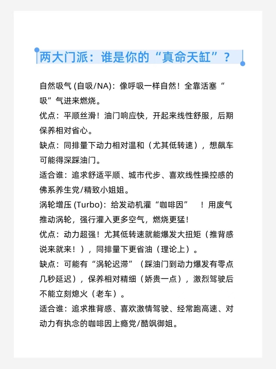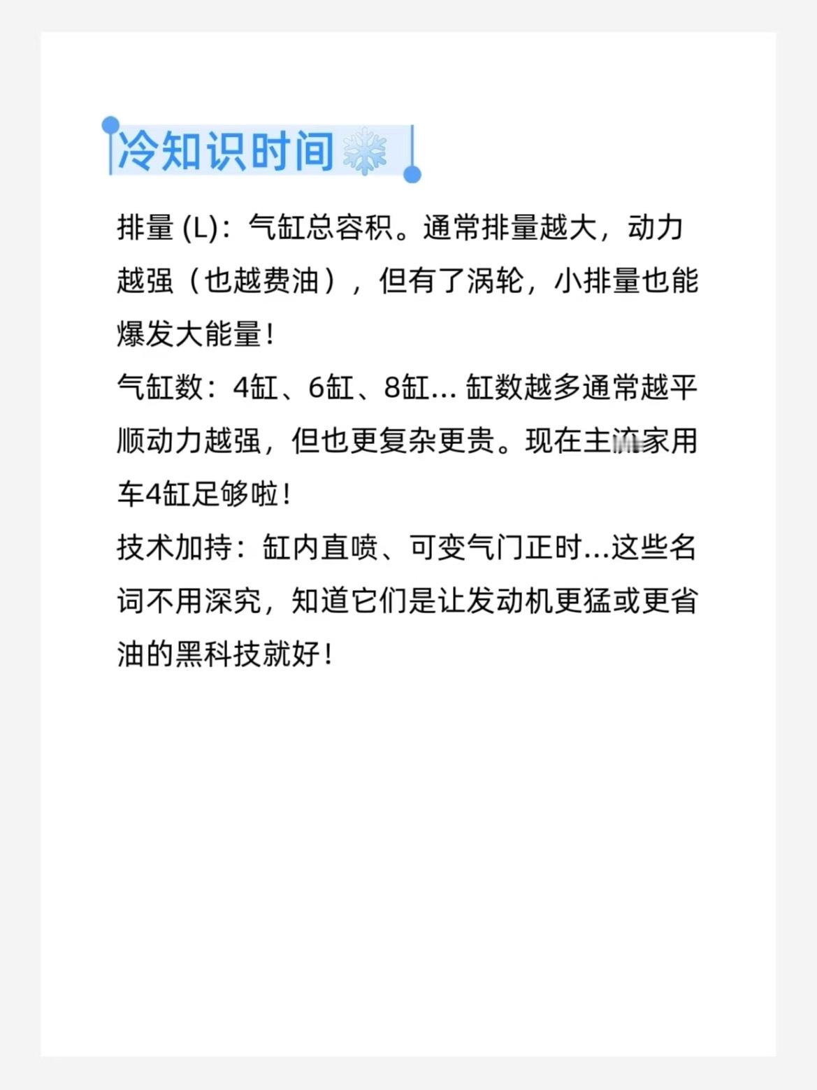 🛞买车时销售满嘴“涡轮增压”、“马力扭矩”,是不是听得一头雾水?别慌!🥸今天用大白话,带你搞懂发动机那点事儿~从此选车不纠结,拒绝被忽悠!保👛的知识点放在图片里了,记得收藏哦😏