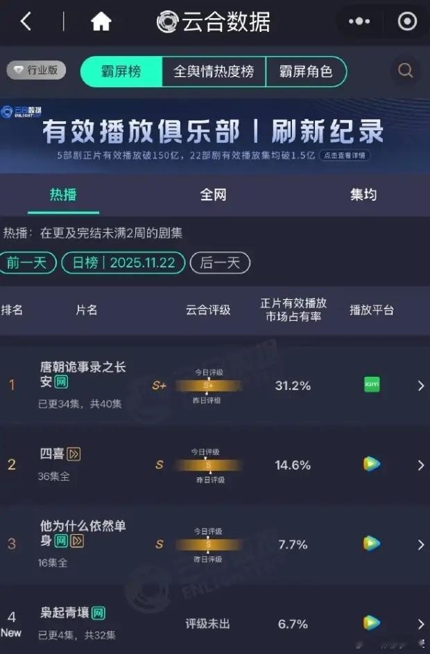 《唐朝诡事录之长安》收官全集有广!从第一部没有广告,到第二部零星几个广告到第三部全集有广,IP越来越大了,广告数量171,仅次于《生万物》,广告时长4.65秒,爱奇艺全年第一,云合占比也终于突破30%大关了。