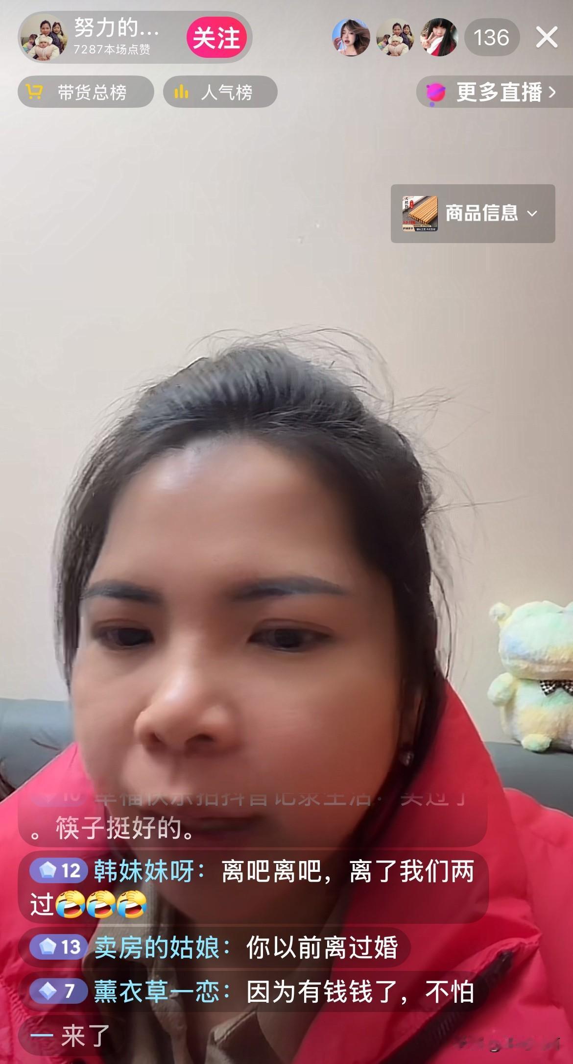 农村小英子刚在直播间爆料,她曾离过婚,并不在乎再离一次。 她首次承认自己二婚,着实有些出人意料,看来之前的传言是真的。 小英子直播卖筷子时,听到孩子不停哭闹。 粉丝纷纷劝小英子,别太拼了,让农村四哥负责挣钱养家,自己专心带孩子不好吗,何苦让自己这么辛苦。 英子坦言,她也是无奈,有苦衷。难道农村四哥不养家吗?应该不至于吧。 一个女人远嫁千里,不顾一切为婆家生了三个孩子,已经很了不起了。 农村四哥可千万别辜负小英子。 @农村四哥