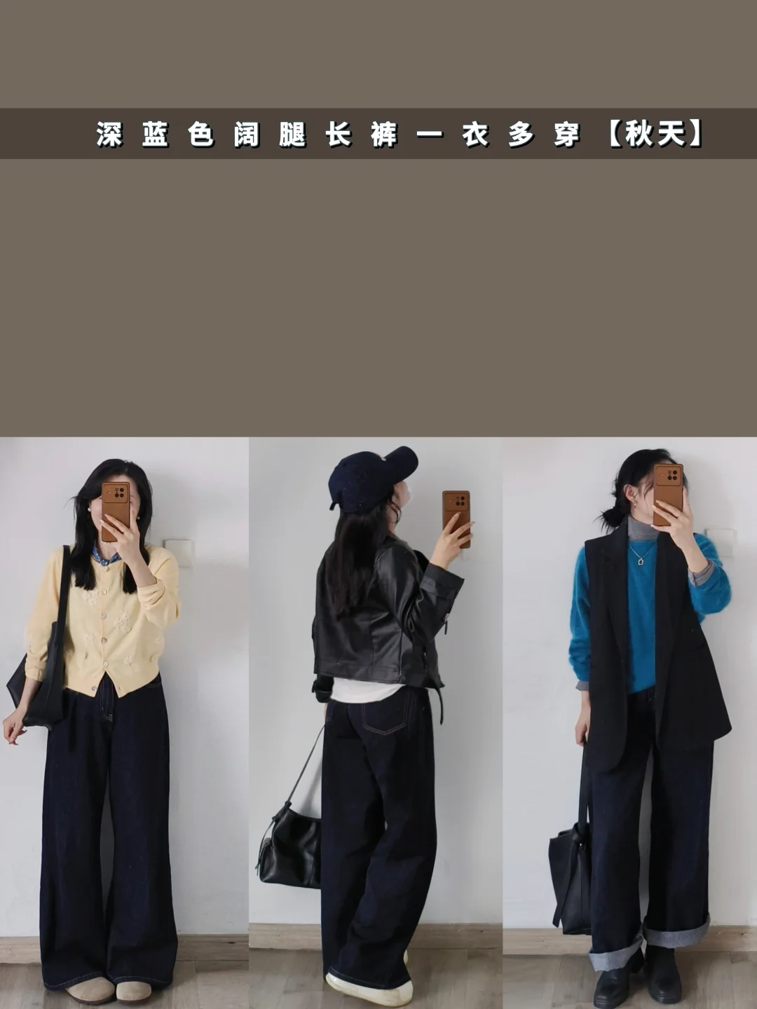 深蓝色阔腿裤