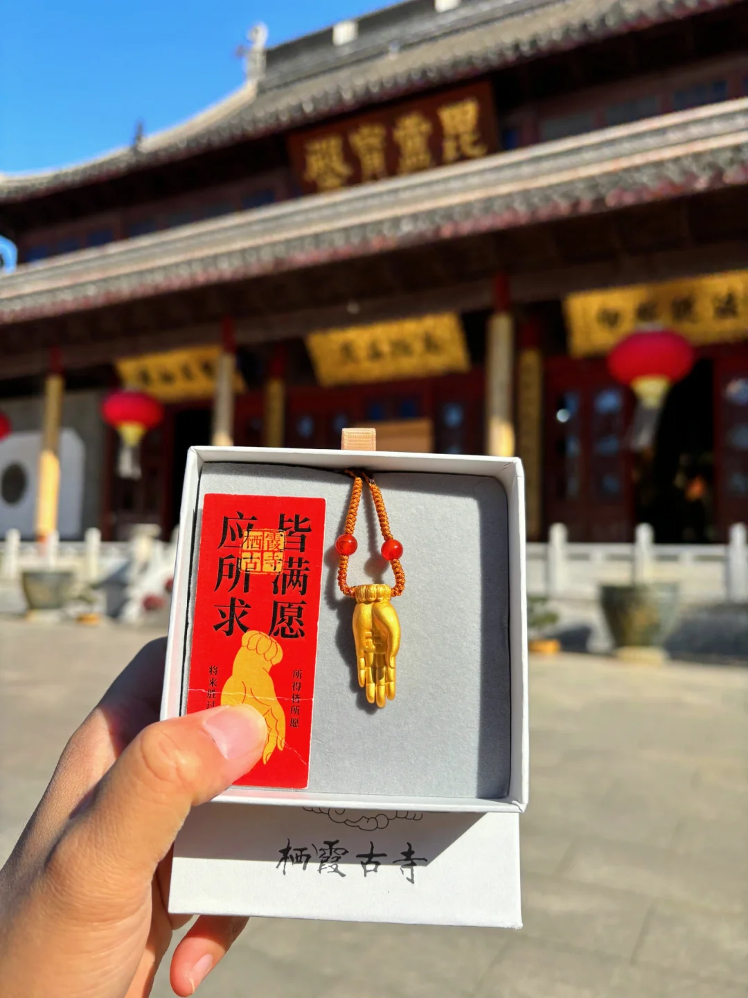 南京栖霞寺的文创真的好会啊! 昨天去栖霞寺跟风看看《黑神话悟空》中 南京唯一取景地——舍利塔 正好看到🆕佛手和葫芦挂坠 佛手寓意应所求 皆满愿 新的一年万事顺遂🙏🏻 [打卡R]栖霞寺 🎫:门票50r 学生半价 (早上7点之前入景区免f🆓) 🚇:地铁2号线羊山公园站 【路线攻略】 栖霞古镇一哼晗殿一明镜湖一栖霞古寺一舍利塔一千佛崖一虎山栈道一碧云亭一红叶谷—桃花湖—桃花扇亭—彩虹明镜