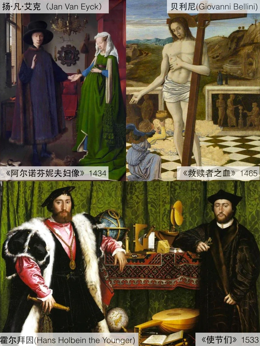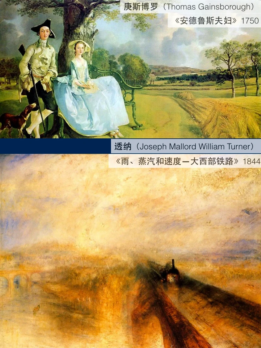 🔹英国国家美术馆也收藏了许多顶流真迹。扬凡艾克在《阿尔诺芬尼夫妇像》里,表现出对空间、光线和细节的高超把握;乔瓦尼.贝利尼在《救赎者之血》中,将自然与人物、造型与色彩完美结合;荷尔拜因在《使节们》中,展示了传统技法与矫饰主义的奇妙碰撞;庚斯博罗在《安德鲁斯夫妇》里,融入深爱的英格兰风景;透纳在《大西部铁路》中,呈现文明推进的力量。