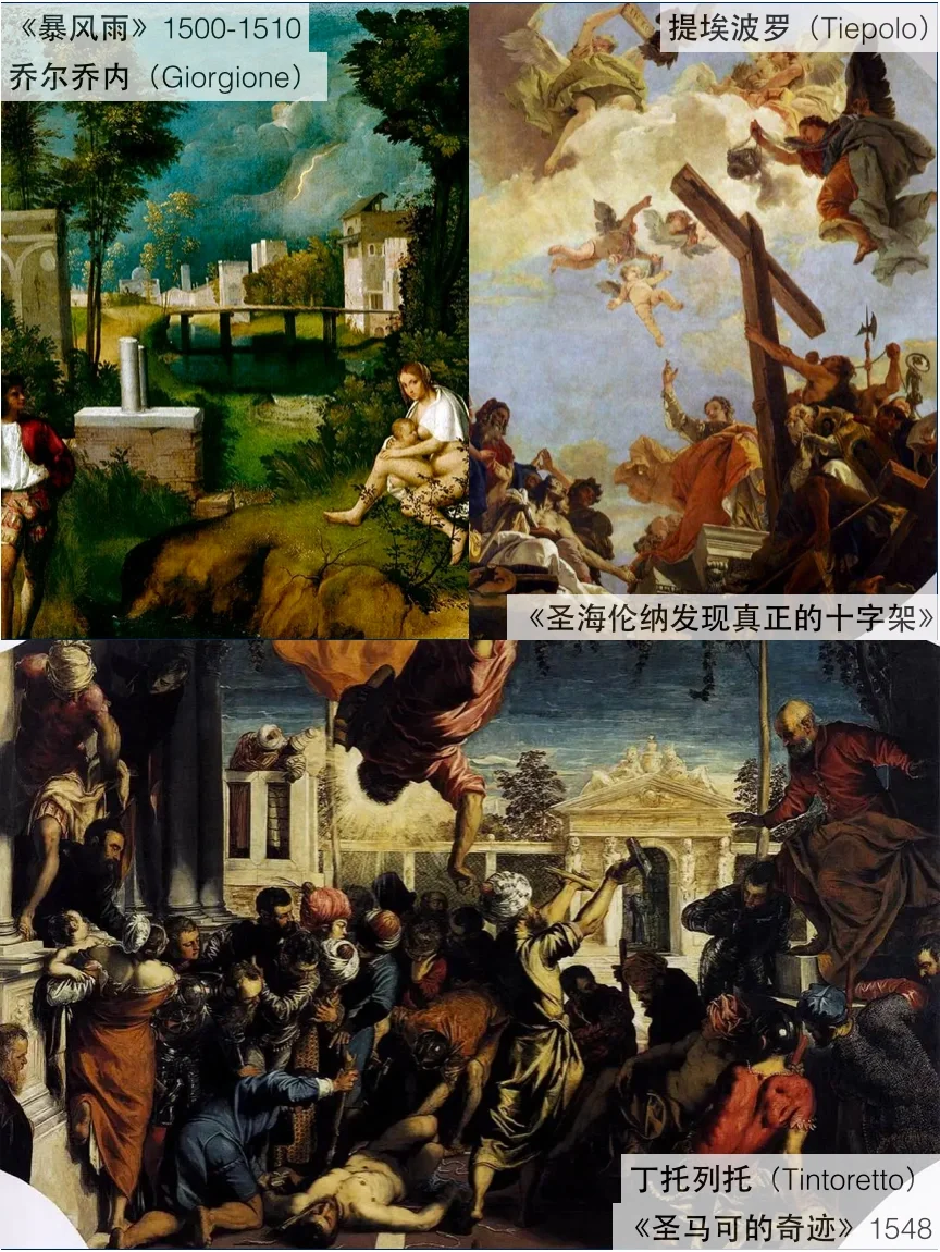 🔹同在意大利的威尼斯学院美术馆,则汇聚了威尼斯画派的主要作品,比较出名的有西方艺术史的第一幅风景画杰作:乔尔乔内的《暴风雨》;继承提香色彩和米开朗基罗设计的丁托列托代表作《圣马可的奇迹》;以及将洛可可风格表现得淋漓尽致的提埃波罗画作《圣海伦纳发现真正的十字架》。
