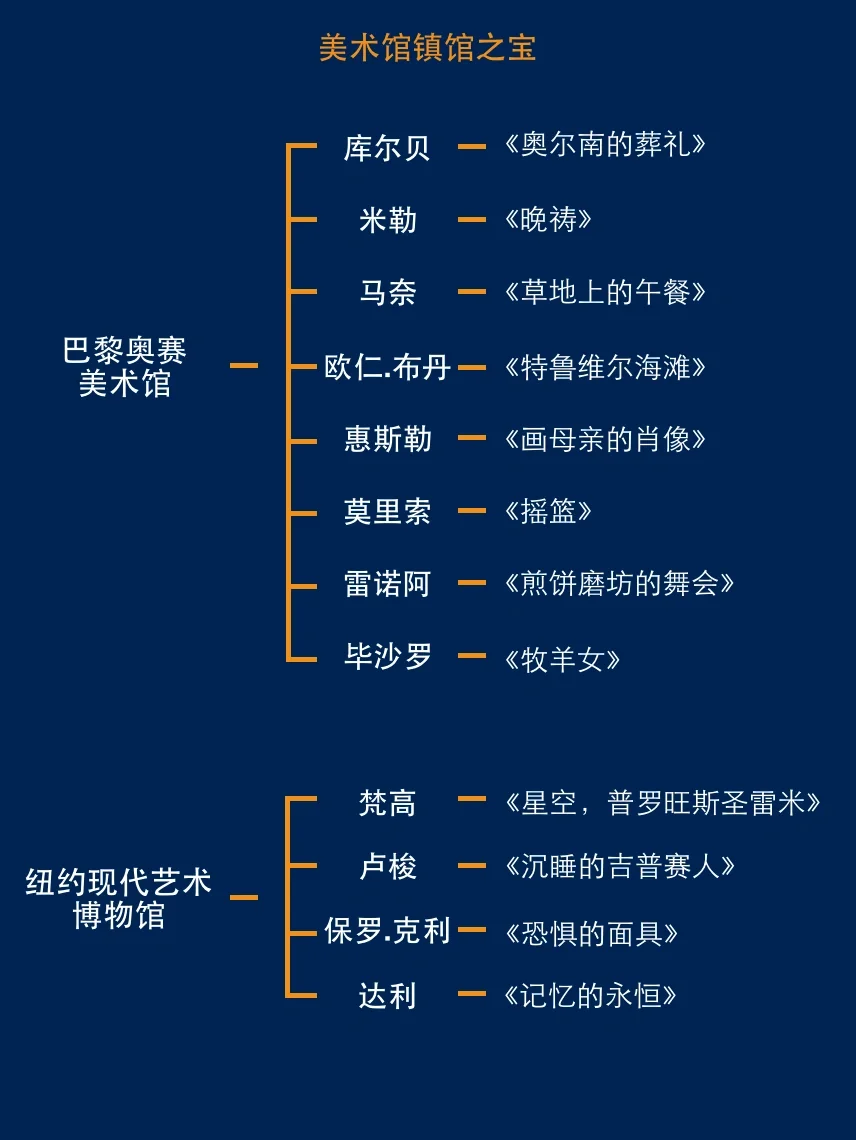 🔹19世纪的艺术属于法国,也属于巴黎奥赛美术馆。在这里,我们能看到现实主义大师库尔贝的《奥尔南的葬礼》和米勒的《晚祷》;也能看到印象派奠基人马奈的《草地上的午餐》和《阳台》;还能看到印象派成员惠斯勒的《画母亲的肖像》、莫里索的《摇篮》、雷诺阿的《煎饼磨坊的舞会》以及毕沙罗的《牧羊女》。