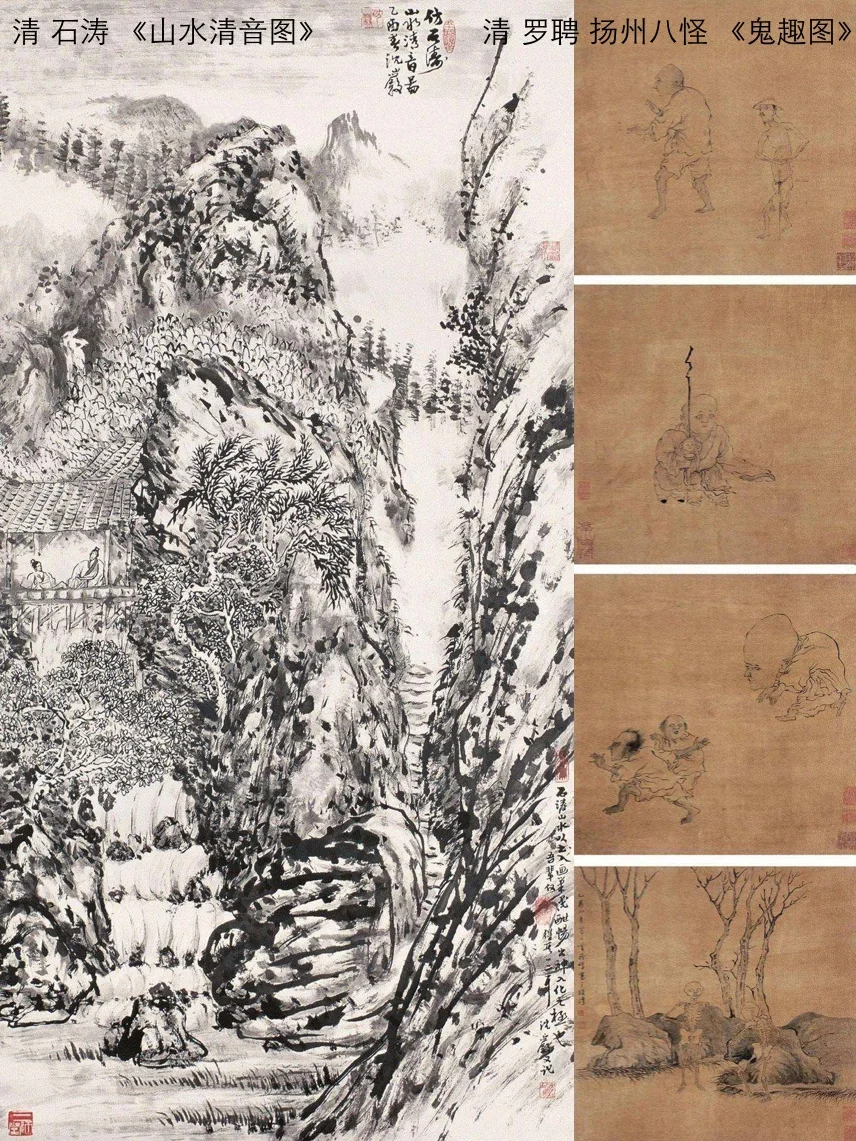 追随董其昌者,成为清朝正统派主流,与之相对的,是前朝遗民画家,他们的作品跳出理论框架,自由洒脱🍶