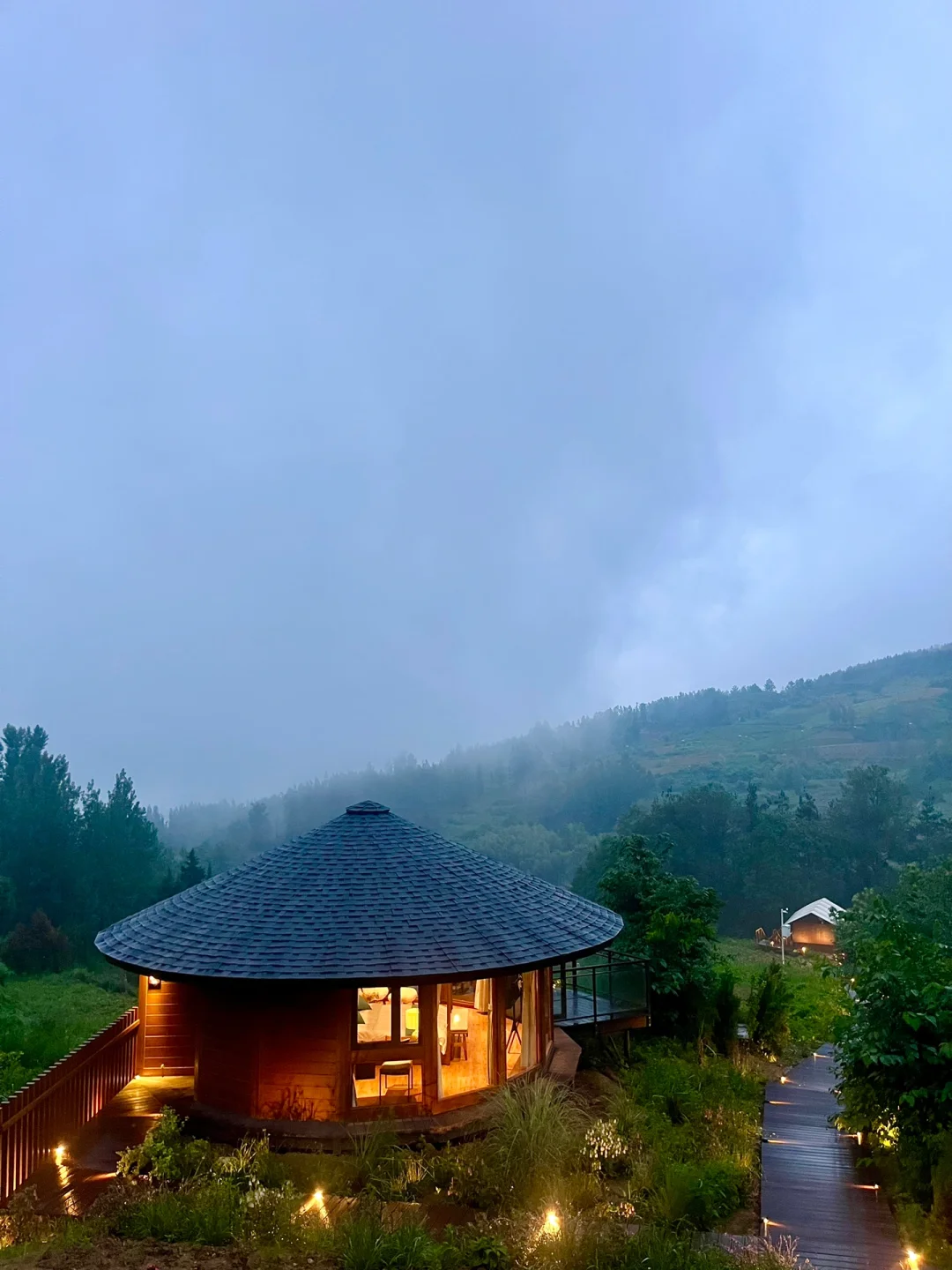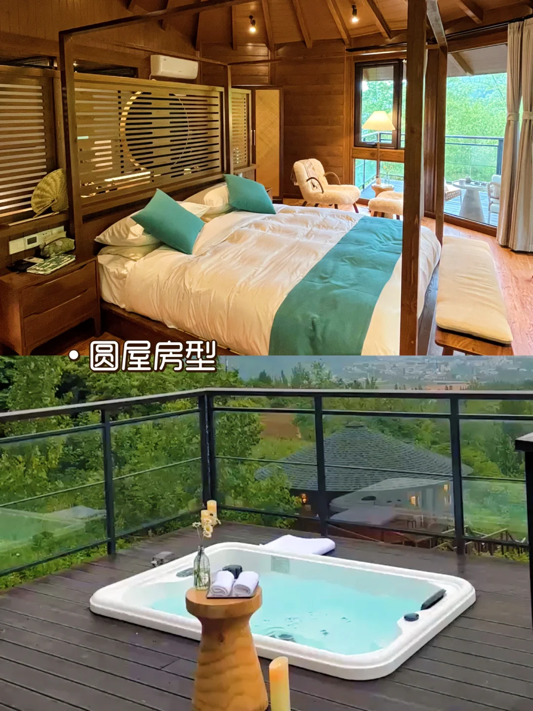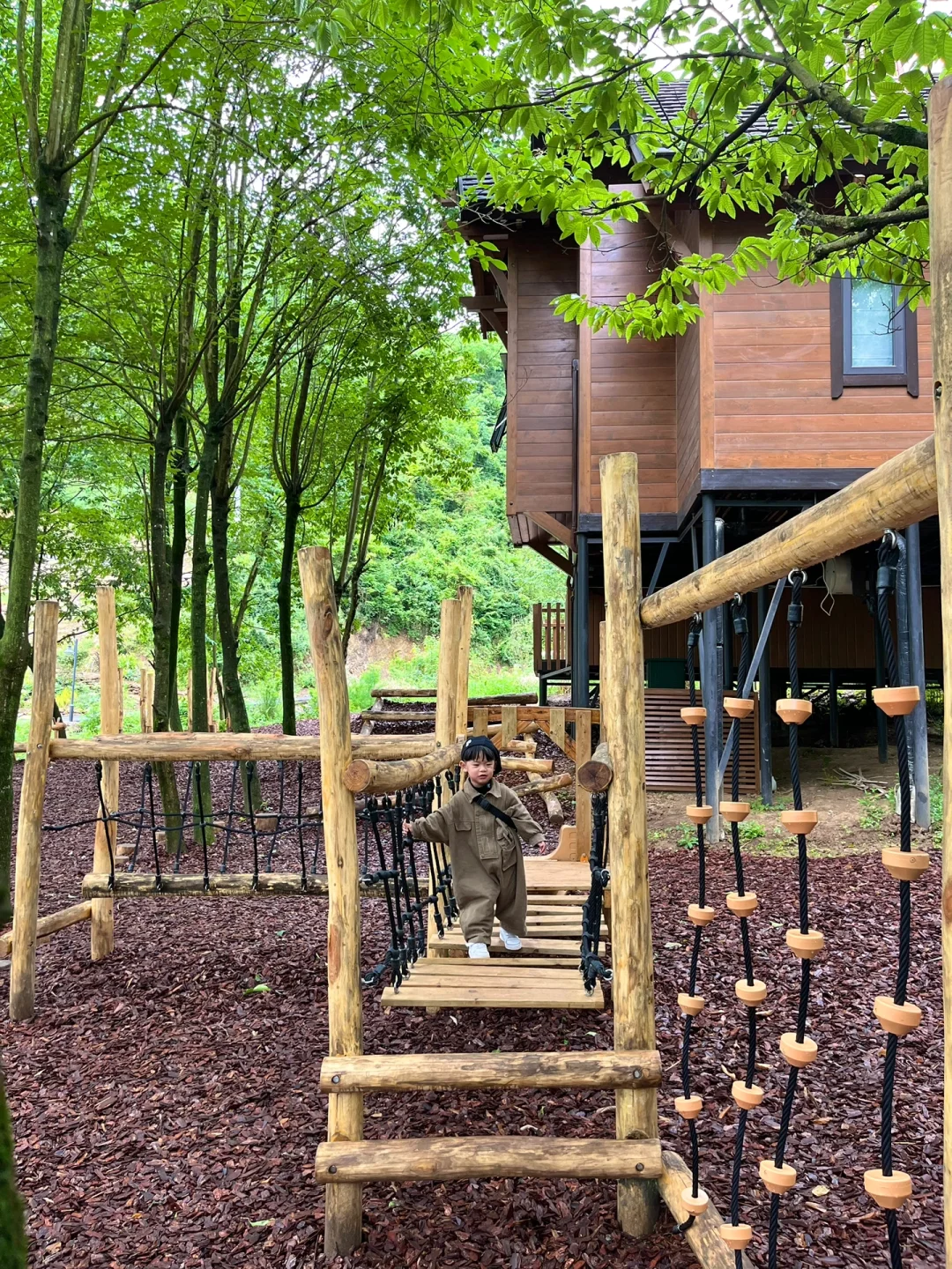 去年带娃走过武汉好玩地100站‼️今年继续 第141站:有山有水绝美度假地 这里算是我今年住过zui喜欢的一个民宿了‼️ 一开始被吸引的是带滑滑梯的独栋小木屋🛖 但着实没想到这里风景这么美 live实拍图给到你们‼️ 🚗出行: 📍地点:酒神湾乡村度假区 从武汉自驾4.5h,高铁🚄2h,高铁后坐车1.3h 🧸游玩攻略: 1️⃣一共有26栋木屋别墅,亲子房型有三栋,亲子房很适合一家人出行,上下两层,楼下大床房,二楼有儿童游乐区+两张单人床,其余的木屋就很适合情侣,阳台浴缸很浪漫,站在山顶看城市的风景不要太美 2️⃣民宿有餐厅🍴,味道也是出乎我意料的好吃🙆,如果不想吃餐厅离市区也只有十分钟路程 3️⃣有儿童游乐区,滑滑梯、攀岩、跷跷板等,民宿后还有座山可以徒步爬山⛰️ 4⃣️每栋木屋都隔着有段距离,私密性好,晚上也特安静,一躺下就睡着啦 5⃣️周边游玩: ✅野人谷、野人洞 ✅神农架✅武当山 - ⚠️山里早晚温差大,记得多给娃带件外套,穿球鞋 -