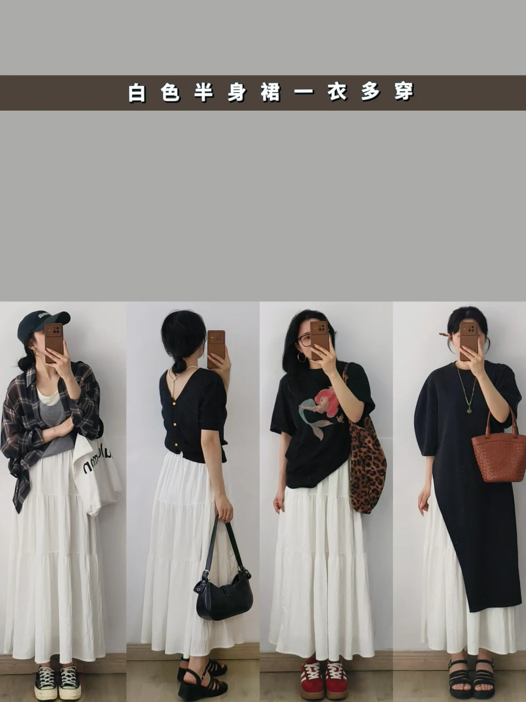 小个子学穿搭❗白色半身裙❗普通人一裙多穿