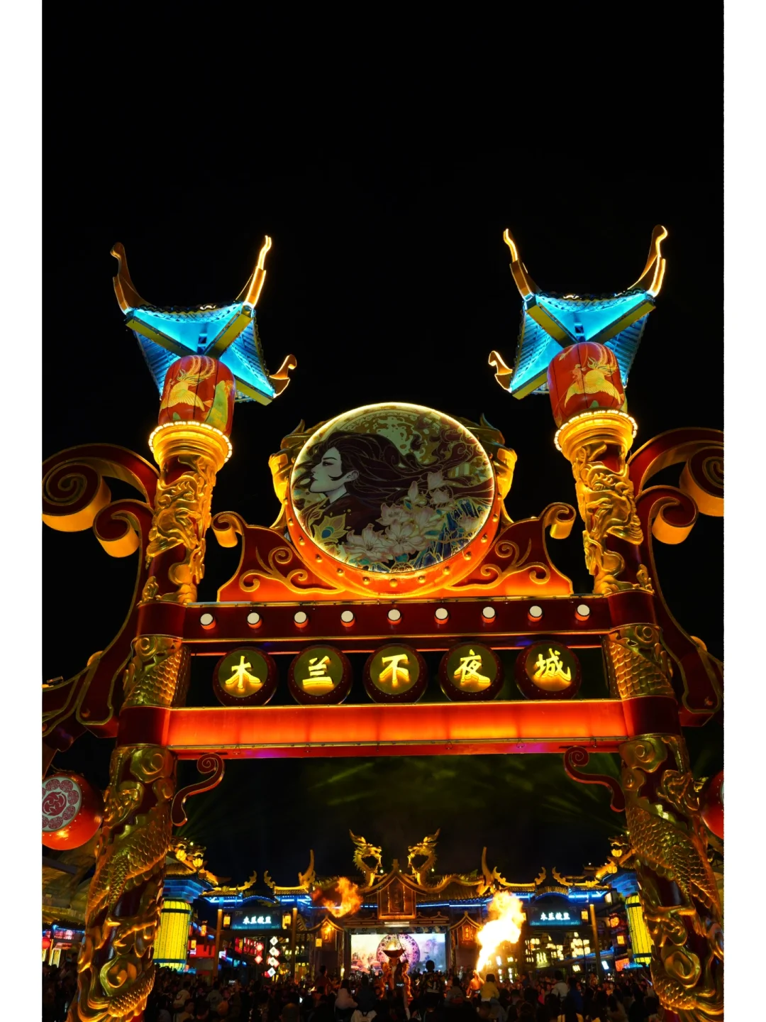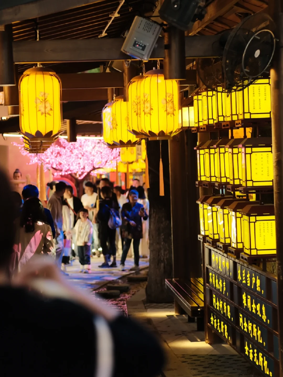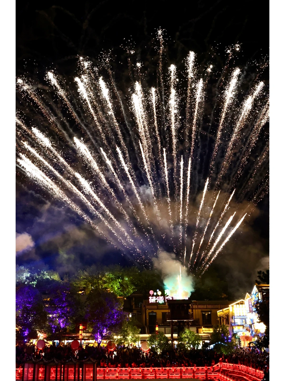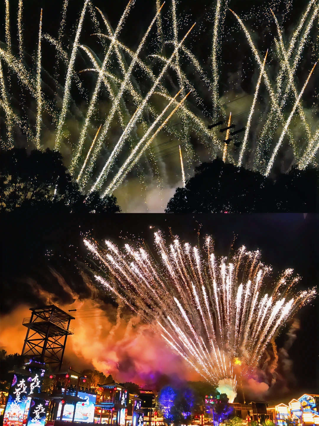晚上可以在古风小镇吃美食看表演和烟花秀🎆