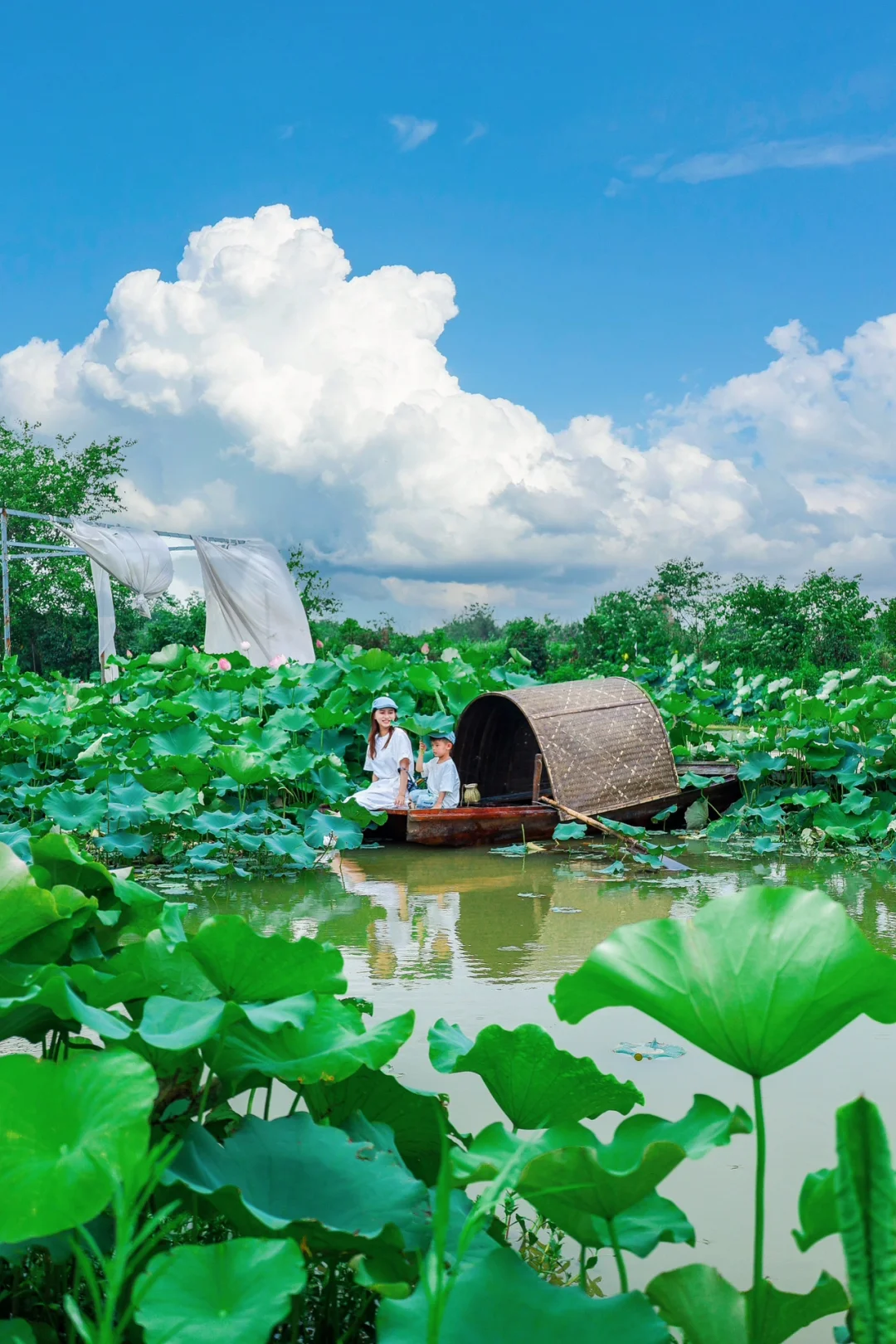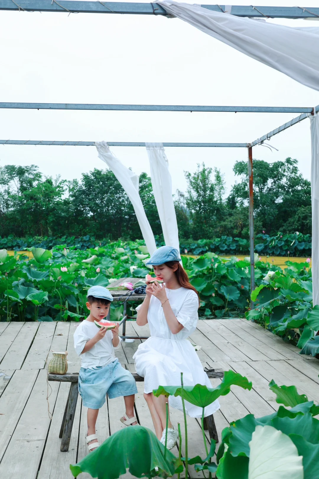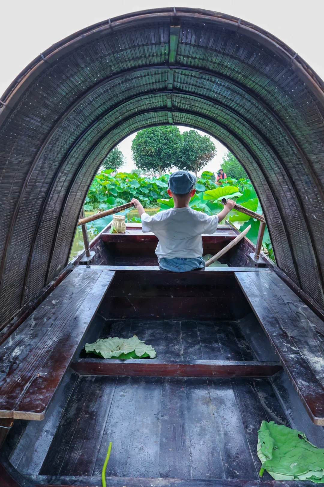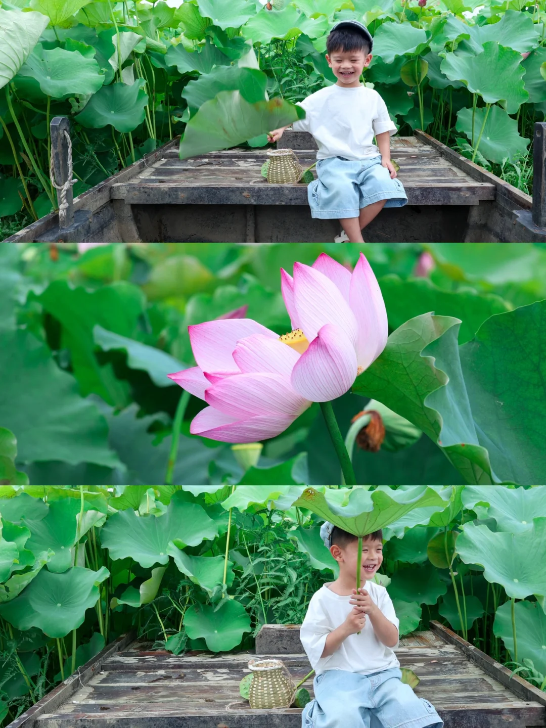 去年走过好玩地100站‼️今年继续 第238站:摘莲蓬赏荷花 这几天的武汉阵雨🌦️不断 好在是一阵一阵的,雨后的天气格外凉爽 带着小肥羊去摘莲蓬摘西瓜🍉 没太阳的天气划船太舒服了 如果下点小雨更有氛围感 我们就悠哉的坐在船头吃莲蓬🪷 老板人很好,看我们玩累了,抱来西瓜给我们吃 最后也亲手挑了两个大西瓜回家 - 📍定位:自勇园艺 🚗:没停车位,有空位都可以停 🎫:20/人,小朋友🆓(可以坐乌篷船、摘荷花、莲蓬)荷花塘有休息的桌椅 - 🧚‍♀️游玩攻略: ✔️园区种植的蔬菜水果品种很多,西瓜2💰/斤,冬天的时候还来捡土鸡蛋🥚摘草莓 ✔️有一个很大的多肉种植区,多肉爱好者的福音 ✔️如果下雨☔️路上会有泥巴,别像我一样穿白鞋☹️ ✔️拍照📷古风会更好看,但像我们穿简单的白裙子白T也会很棒👍 -