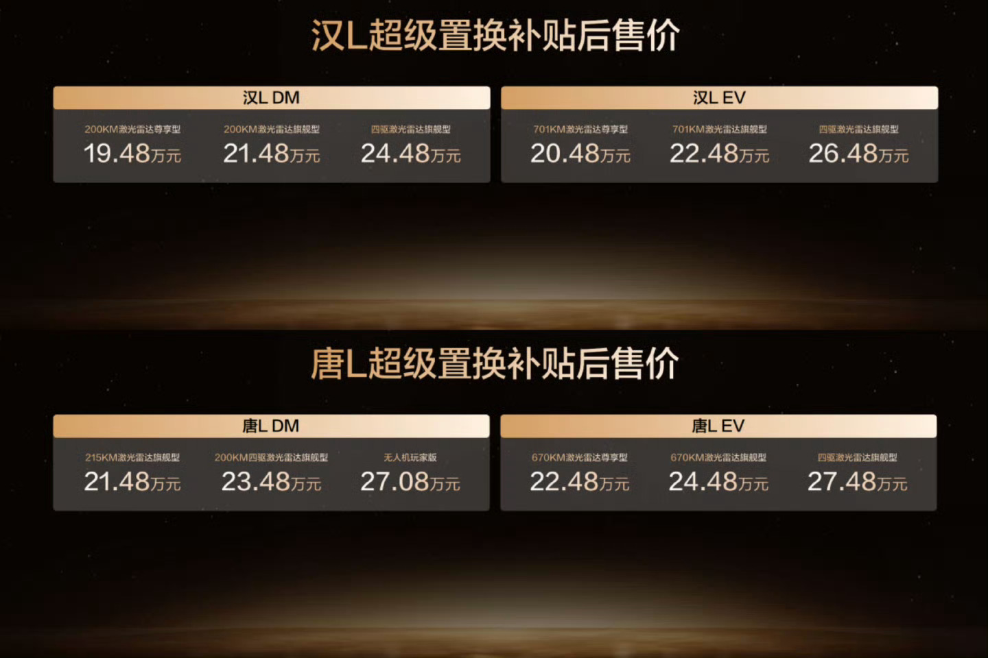 11月21日,比亚迪划时代旗舰车型汉L唐L携新车色及OTA正式发布。其中,汉L