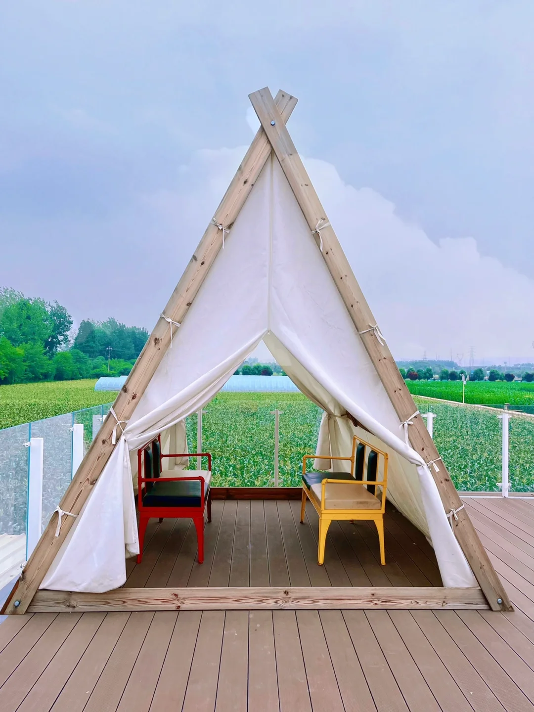 有三四个搭好了的天幕、板凳、帐篷⛺️