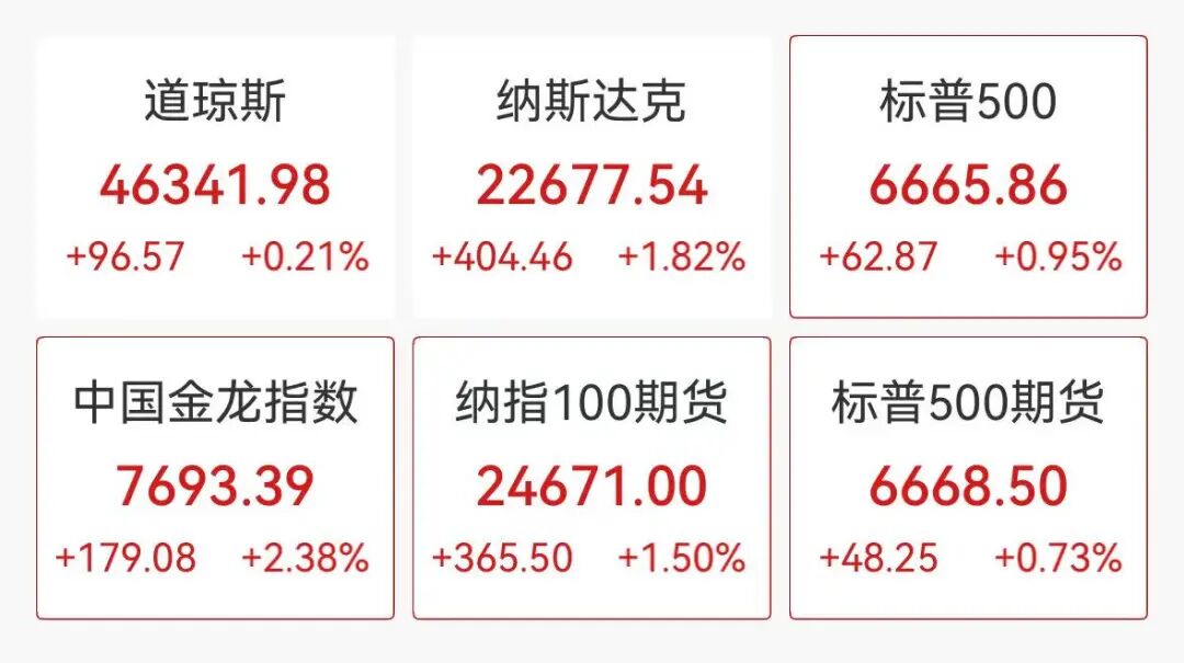 周一,美股三大股指集体高开,截至北京时间23时左右,道琼斯指数涨0.19%,标普500指数涨0.95%,纳斯达克综合指数涨1.82%。
