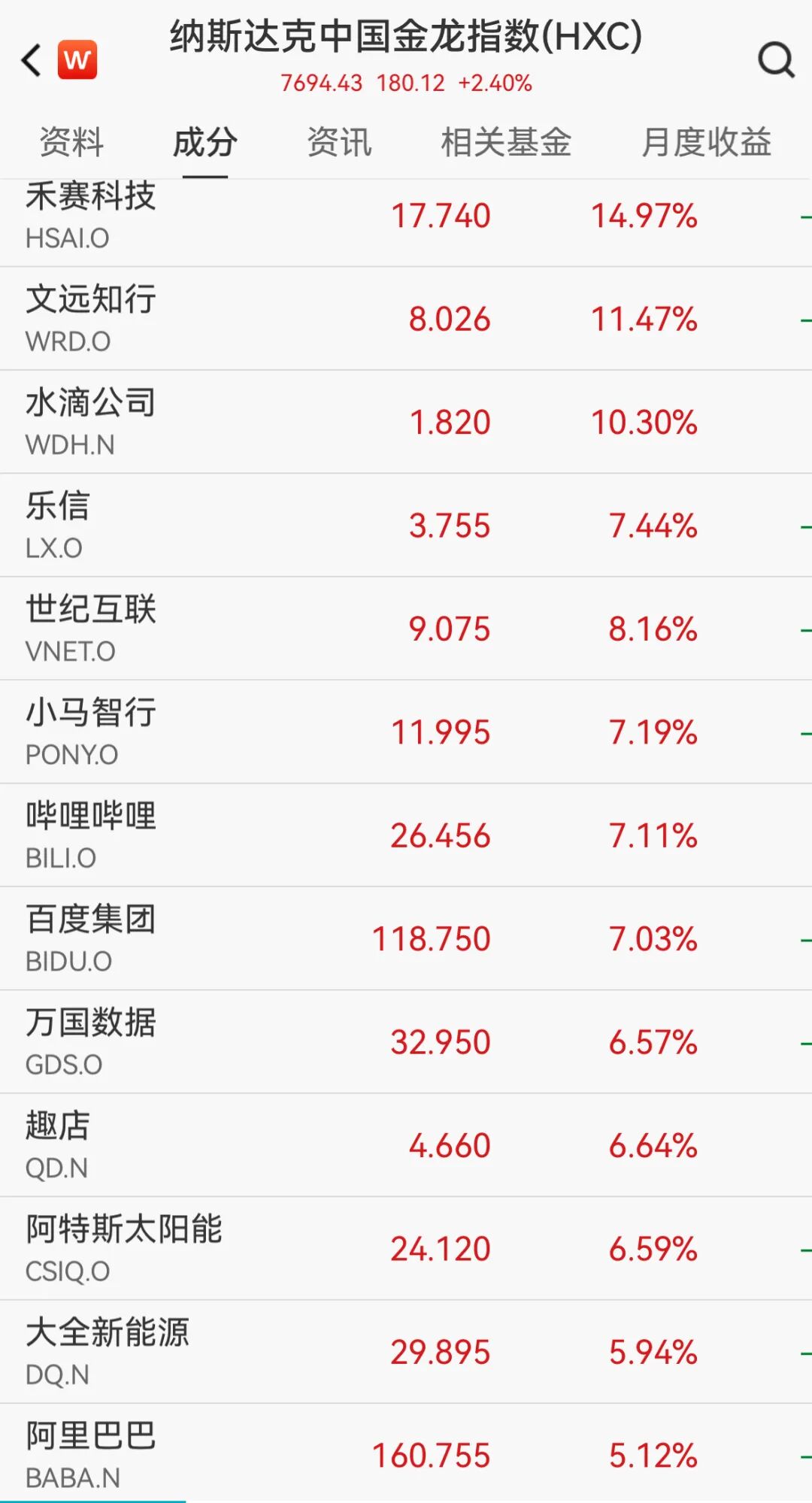 中概股方面,纳斯达克中国金龙指数涨超2%,热门中概股普升,禾赛科技、文远知行涨超10%,百度、B站涨超7%,阿里涨超5%,据阿里巴巴官微消息,千问APP公测一周,千问APP下载量突破1000万。