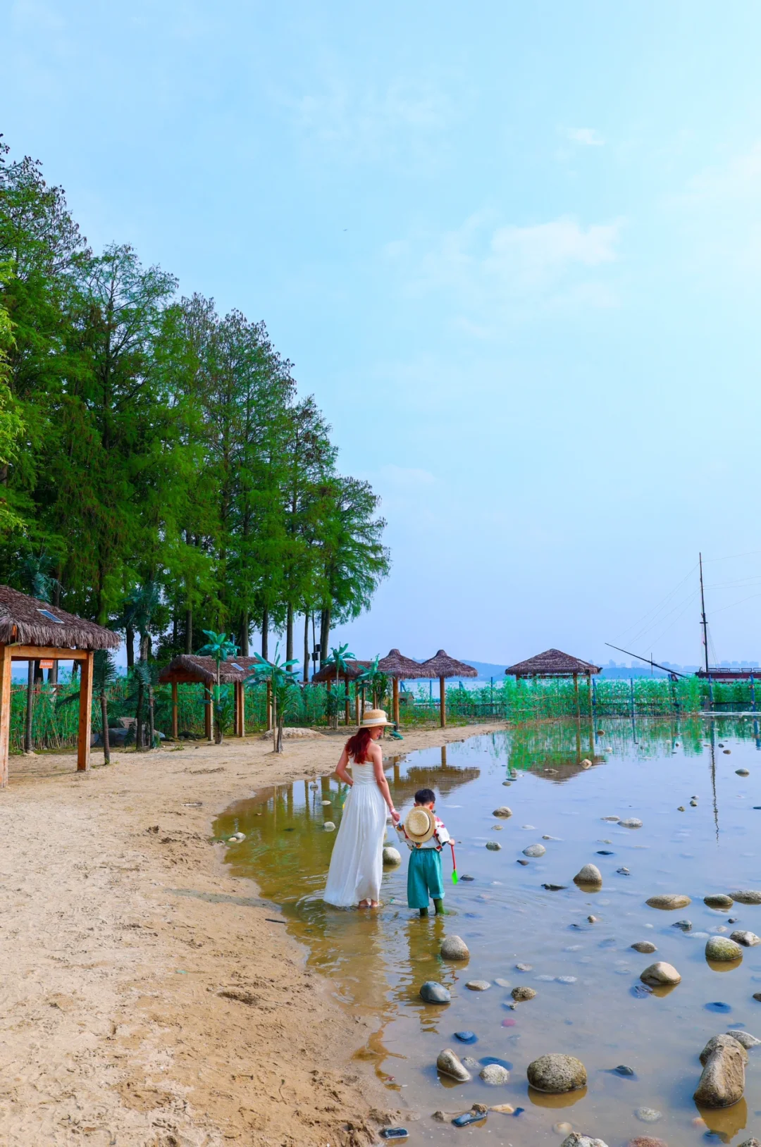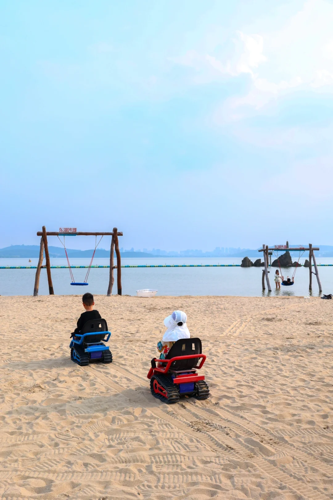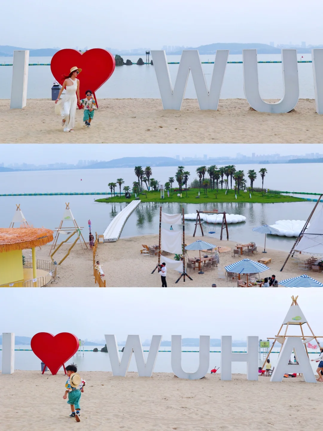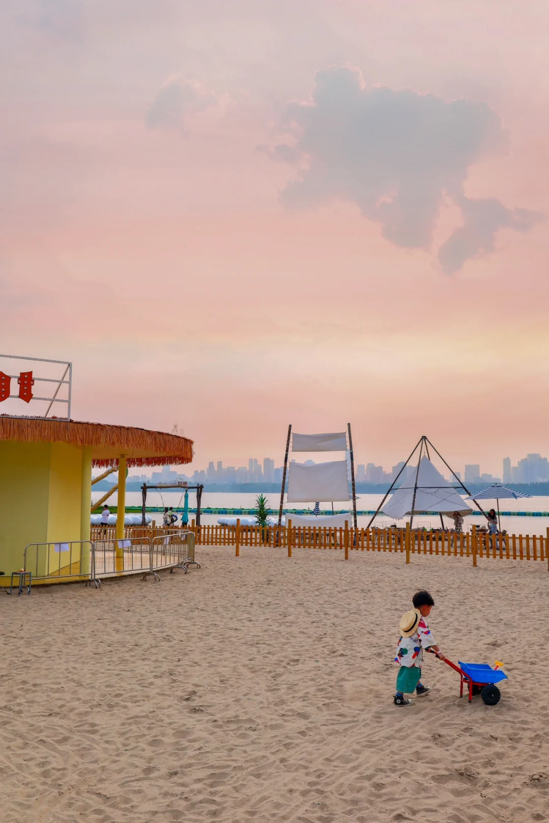 去年走过武汉好玩地100站‼️今年继续 第223站:东湖沙滩🏖️ 今年的东湖沙滩遛娃、约会都好适合🌤️ 带小肥羊玩了一整天 抓螃蟹🦀️、挖沙🏖️玩水💦、淘宝物💎、开挖掘机、吃烤肉🥩、看日落🌅 不费妈‼️一进沙滩就玩嗨了‼️ 沙滩还有很多天幕可以遮阴休息🌴 现在湖心小岛也开放啦✅走过去看沙滩落日很美🌅 - 📍定位:东湖沙滩🏖️ 🚗导航:停车🅿️在“楚风园停车场”然后可以坐观光车到沙滩(30💰)或者骑行都可以 - ✅螃蟹部落:每隔一段时间会重新放螃蟹!所以不怕去晚了就没有螃蟹🦀️啦‼️ ✅现在还能划船🚣,有透明船和手摇船 ✅烤肉味道很好,很新鲜,一家三口一份烤肉餐就够啦🍖 - ⚠️注意事项: 1️⃣防晒‼️戴好防晒帽,擦防晒霜,多备两套衣服!汗湿了打湿了都能及时换 2⃣️挖沙推车,滑沙车是景区免费提供,小朋友可以在沙滩上玩 3⃣️晚上五点半左右可以去营地吃烤肉看落日,湖心小岛也开放了,在湖边吹吹风很惬意 4⃣️天气热起来后,水里会有小鱼🐟,可以带网来抓,可以带小型捕鱼工具‼️ -