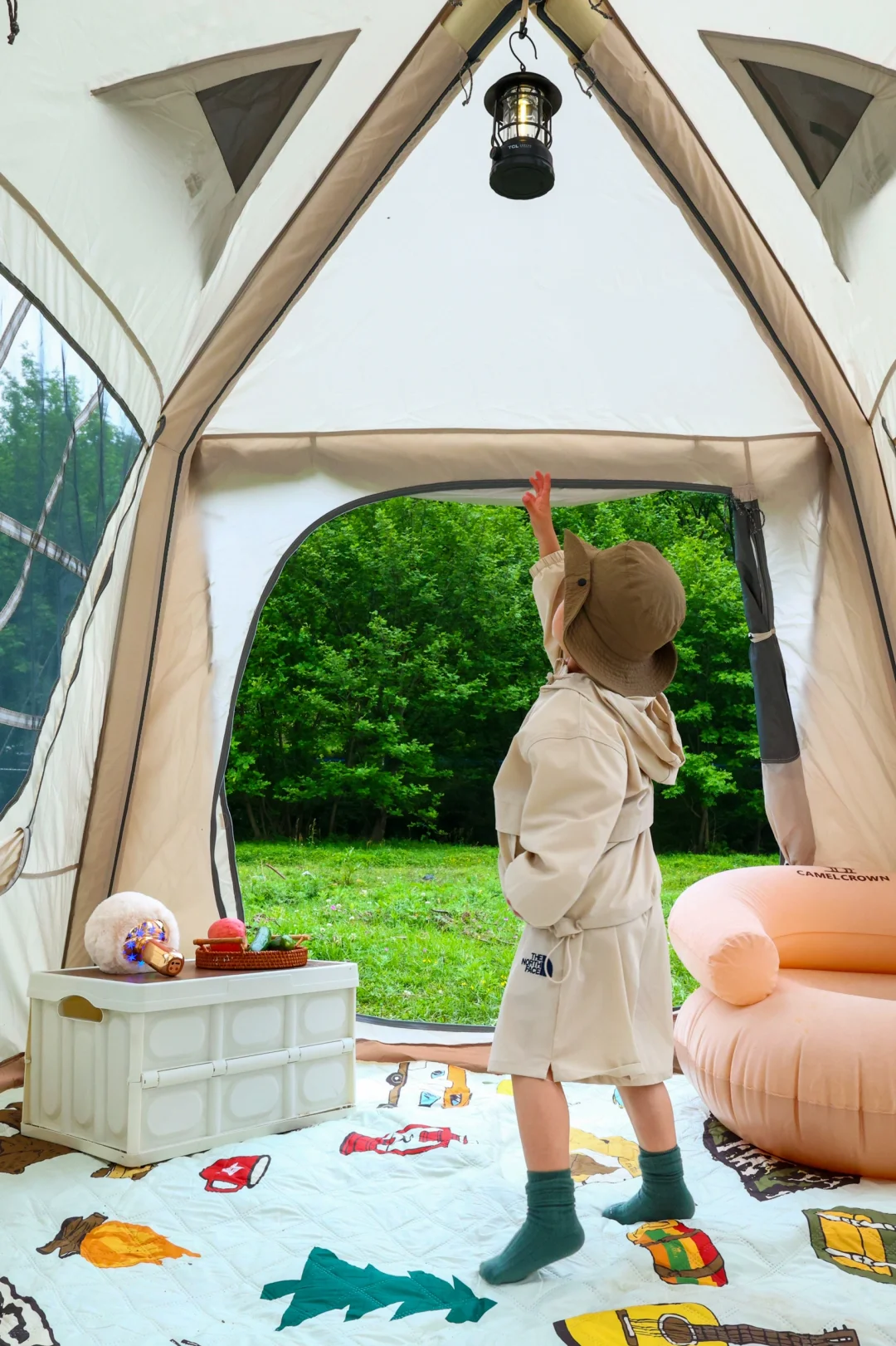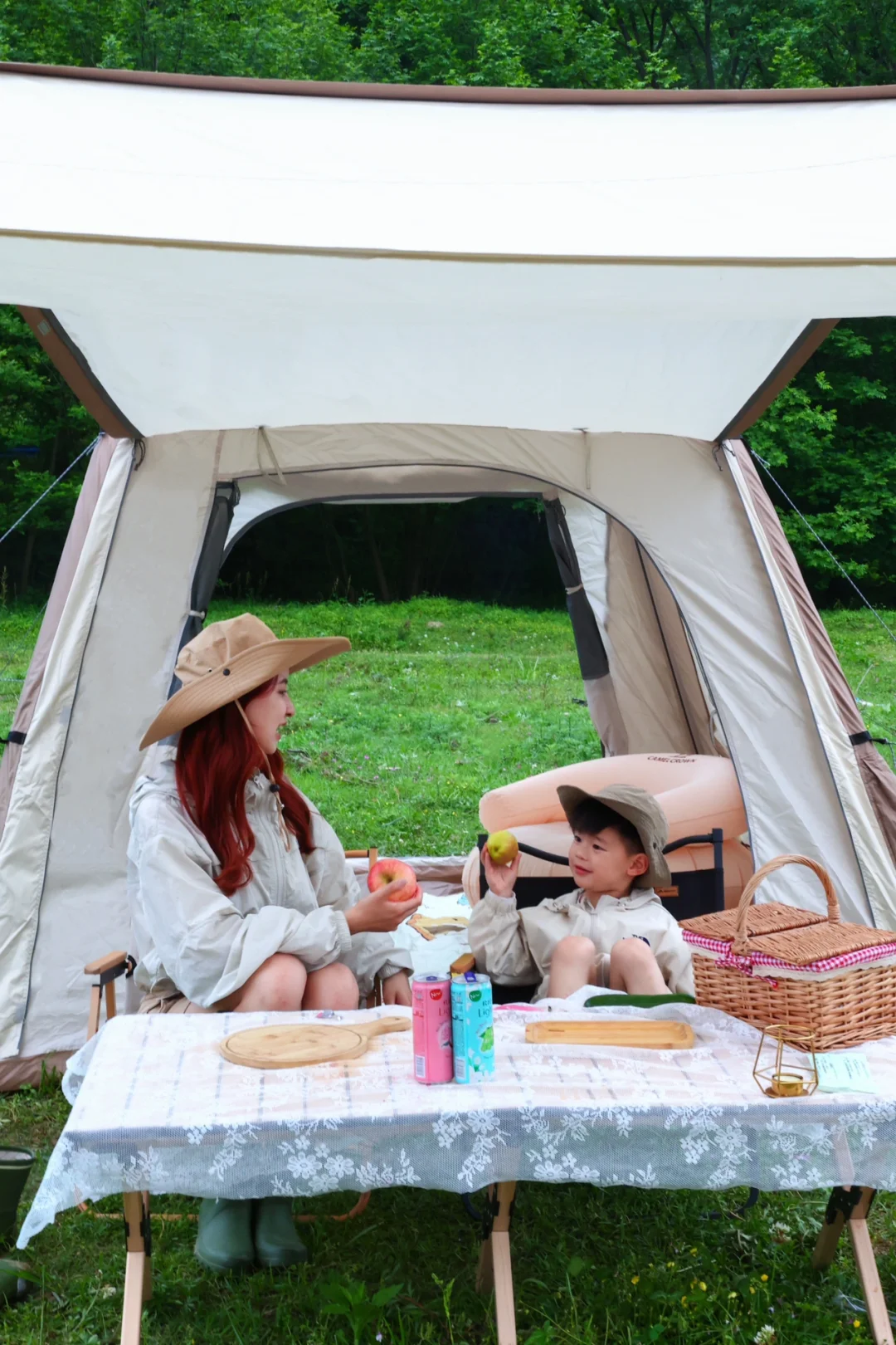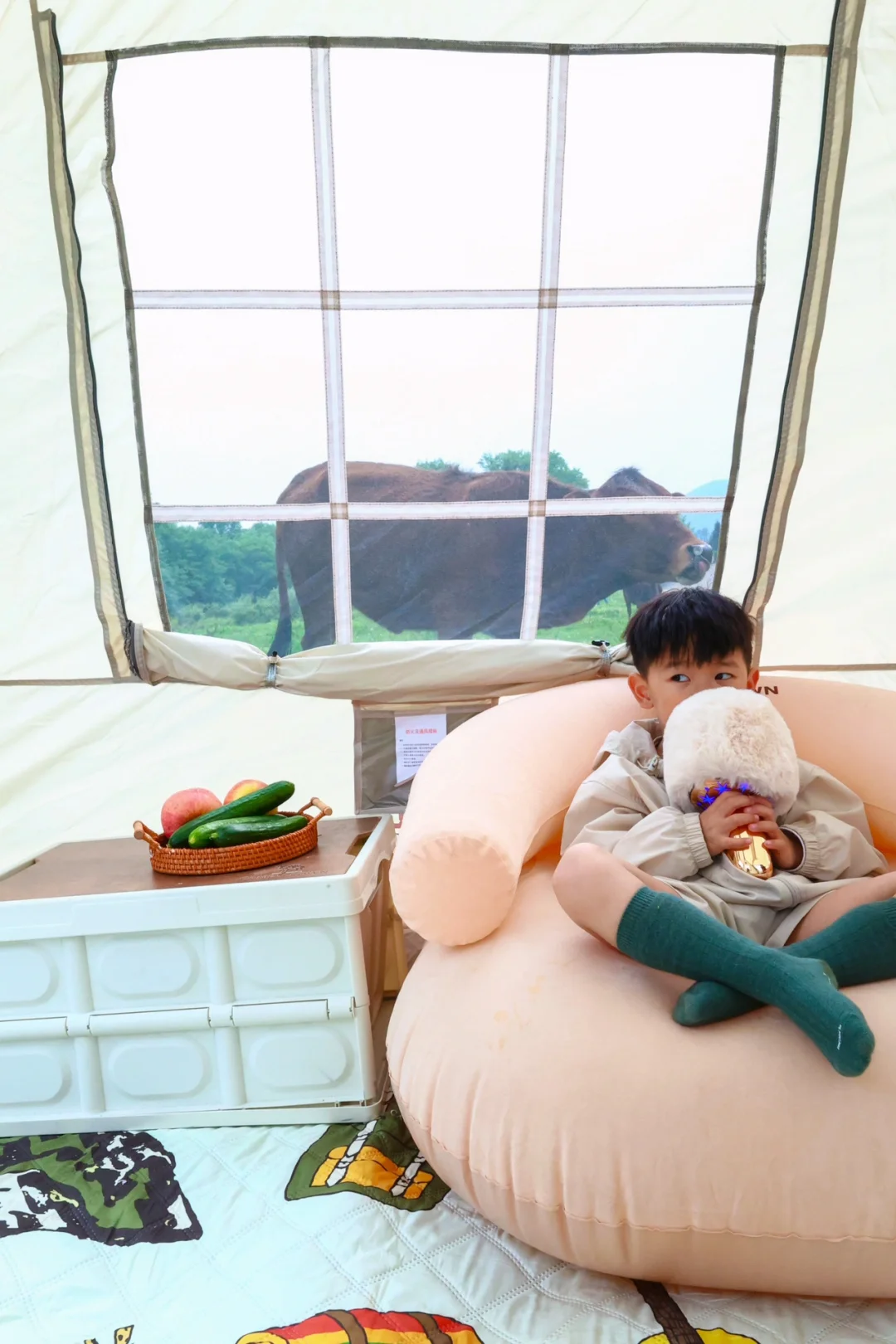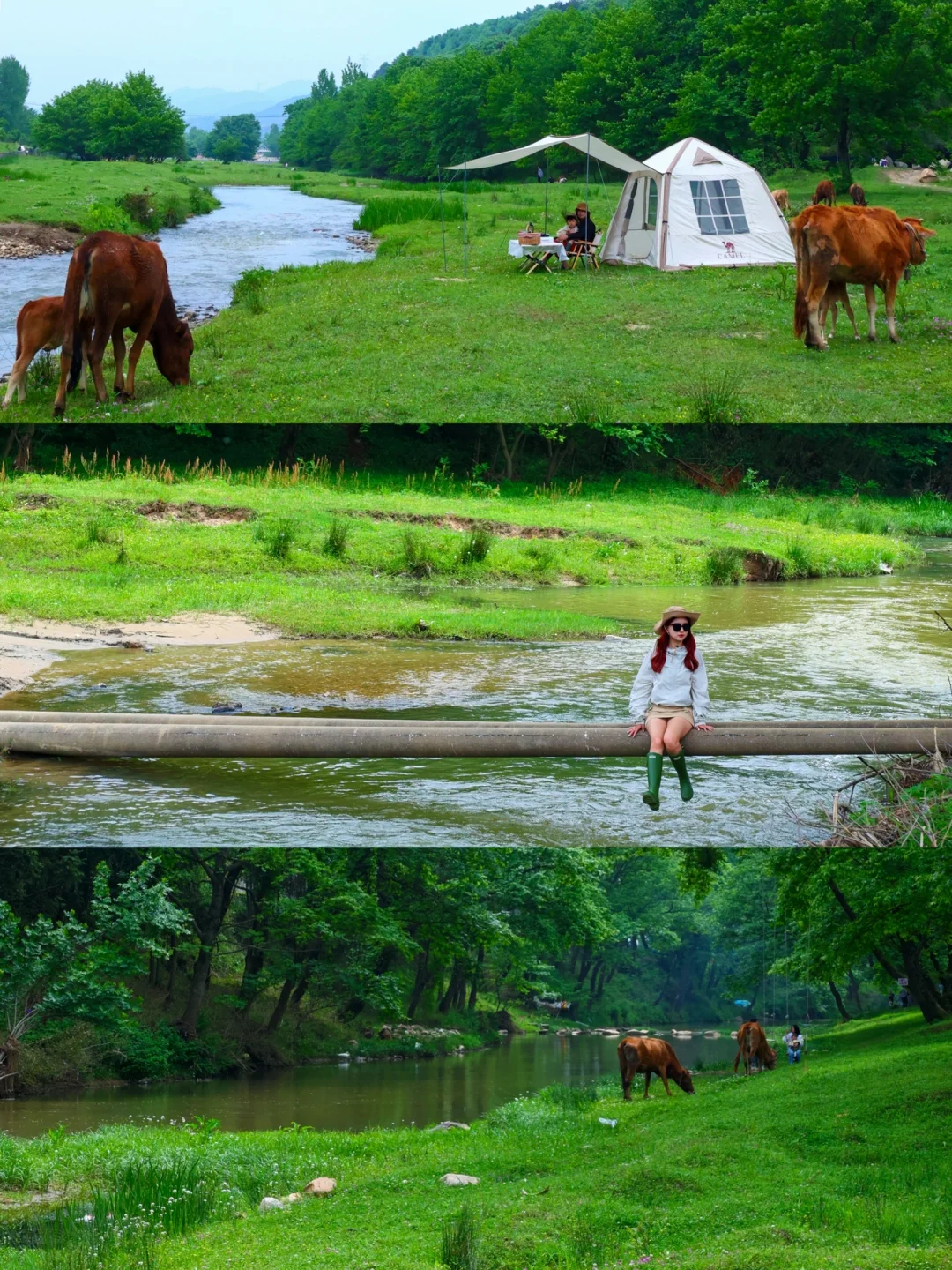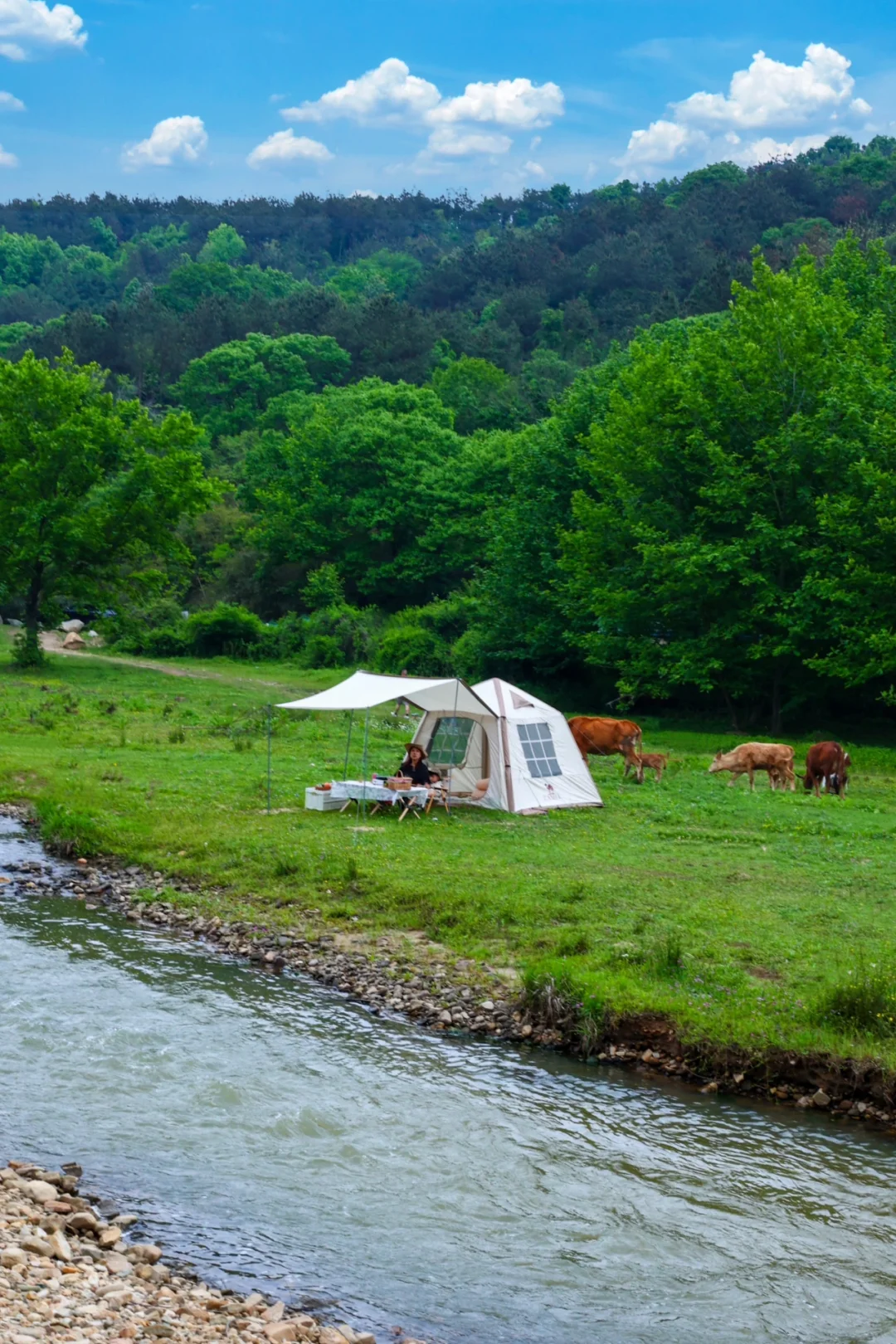 二刷的杨山河吧‼️依山傍水的天然氧吧 开车🚗直达免费露营地‼️这个季节去很凉爽🧊 可在水边搭帐篷,划船🚣‍♀️、穿套鞋玩水 捞鱼、玩水枪、烧烤等‼️ 风景一绝,有种小新疆的感觉 露营的快乐这里都有✔️ - 📍定位:杨山河吧(开车🚗2h)停车免费 - 周末一家人来享受大自然 对于带娃家庭来说出门带个帐篷真的很有必要 这不这次带上了新升级的客卧一体的充气帐篷【骆驼流云小筑】 ✔一键自动充气,按一下帐篷就可以自动长起来。特别是夏天,我们在旁边准备水果的功夫,帐篷就搭好了,那叫一个凉爽舒适。 ✔1.8米加高的帐内空间,属于比较舒适的高度,一家三口在里面休息玩耍都很宽敞,站起来活动行走也很自如。 ✔双开门+两扇大网纱观景窗🪟,坐在帐篷里或者天幕下都很通透,可以惬意的欣赏窗外美景 ✔后天幕还可以进行闭合,到了晚上把鞋子、行李放在后空间,不怕露水,也不怕下雨淋湿了 杨山河吧‼依山傍水的天然氧吧已经二刷了 开车直达免费露营地‼这个季节去很凉爽🧊 -