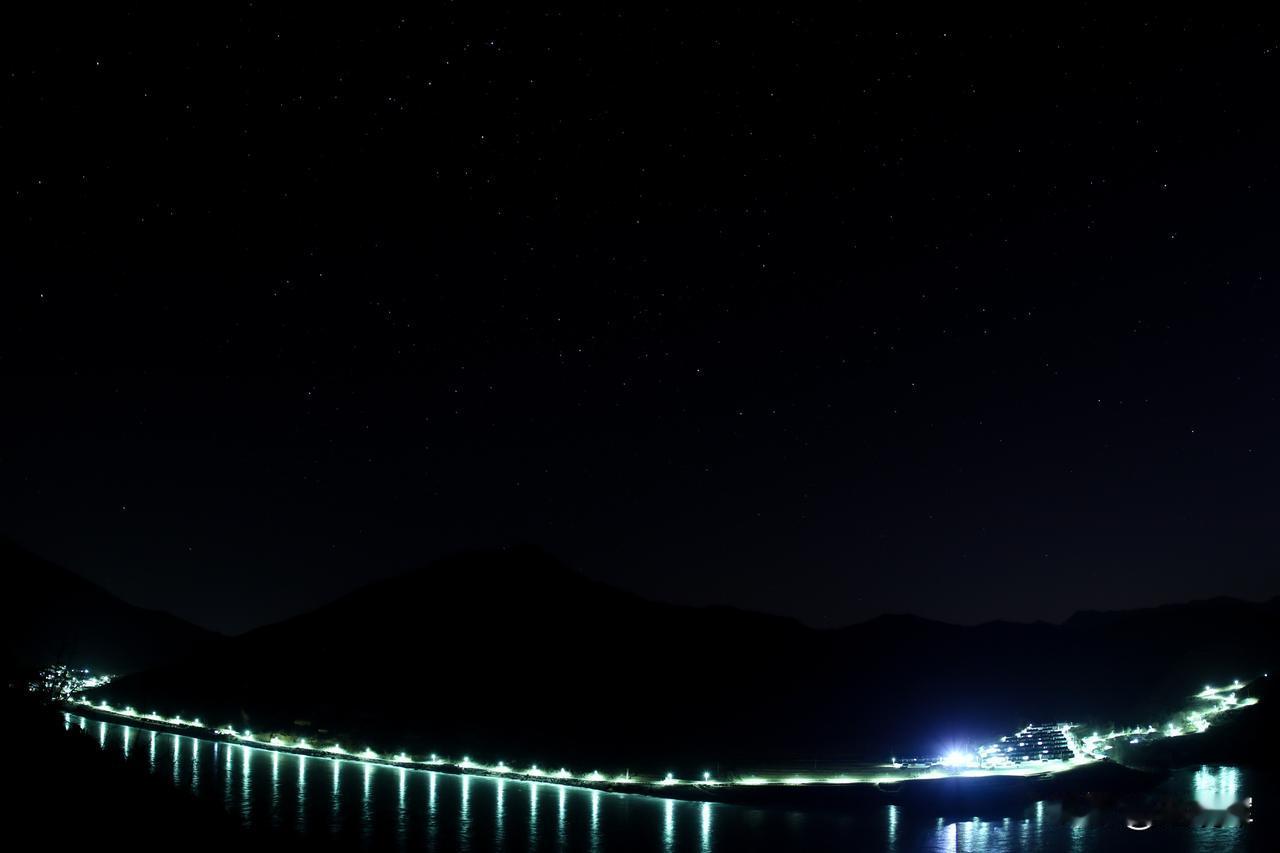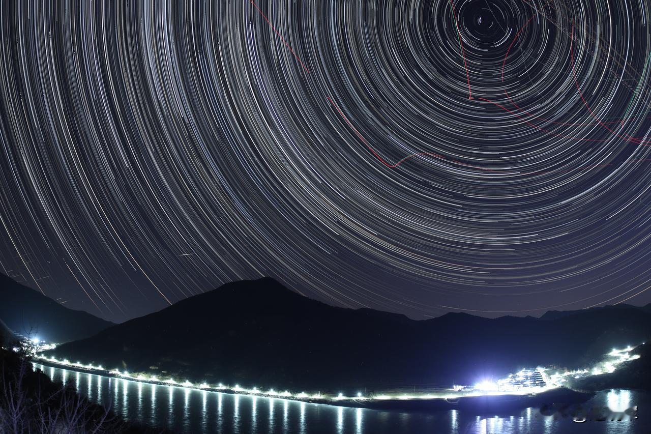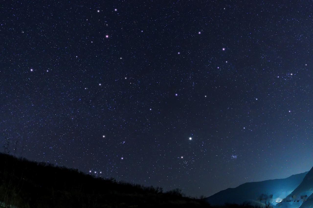 看看照片,您就知道有多美! 6张夜空照片中,第一组照片1~3为星星轨迹,第二组照片4~6为璀璨星空。 先说第一组照片。在为七星连珠天象拍摄选址时,意外见到了照片2的景象:辽西湖北岸山边的村村通公路上,淡绿色的路灯好似天降彩带,镶嵌在蜿蜒起伏的山水之间,而那有序靓丽的水中倒影,更加增添了灵动和美感。 本是来“踩点儿”,却发现了如此美景,尤其湖面、山路,灯带、倒影和山形,非常适合“前景占比三分之一、星空占比三分之二”的星星轨迹照片;于是,当即决定拍摄。 拍摄星轨,我们有经验,那就是:星空照片的前景较亮时,先以最亮处测光并拍下前景照片,既照片2;然后再以星空测光对焦,间隔连拍300张“每张光圈2.8、感光度500、曝光30秒”的星轨素材片,最后把这些照片堆栈,既照片3;拉暗照片3前景灯带部分后,与照片2再次堆栈,就叠加合成了星星轨迹照片1。要注意的是,拍摄过程机位纹丝不动,只调相机参数。 再说第二组照片。这次踩点儿是“七星连珠”的前两天晚上;拍摄完星星轨迹照片后,已经接近深夜零时,发现夜空正西方的星星非常璀璨,组成一个“大扇面”的六颗亮星星中,包括了能够准确辨别的金星和火星,还有已经接近落山的猎户星座的参宿4星。 用鱼眼镜头,把光圈调至2.8、感光度1000、曝光20秒,拍下后就是照片6;然后用星芒软件两级放大星星,就分别是照片5和照片4。 反正自己很喜欢这两组照片,不知朋友们意下如何。
