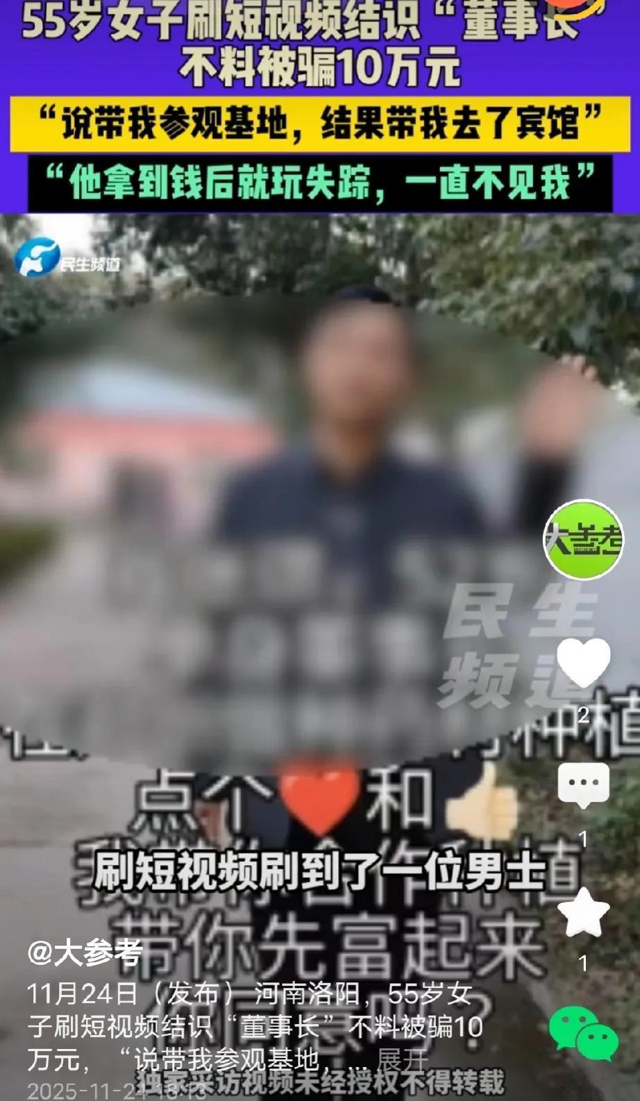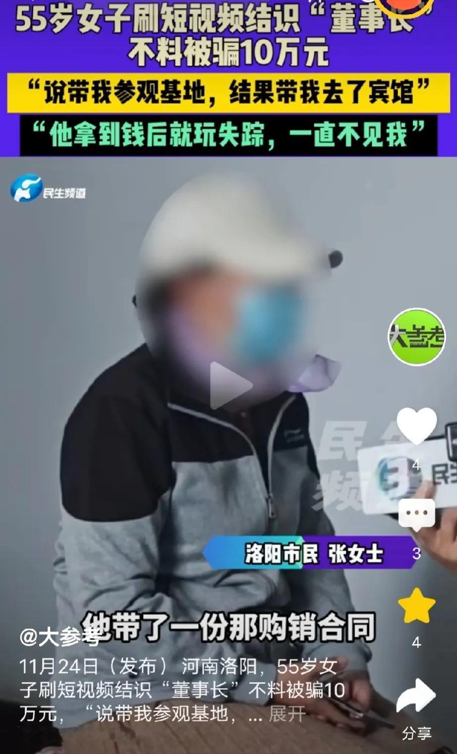 河南洛阳,55岁女子网上认识一男子,对方自称公司董事长,之后以‘带女子参观项目基