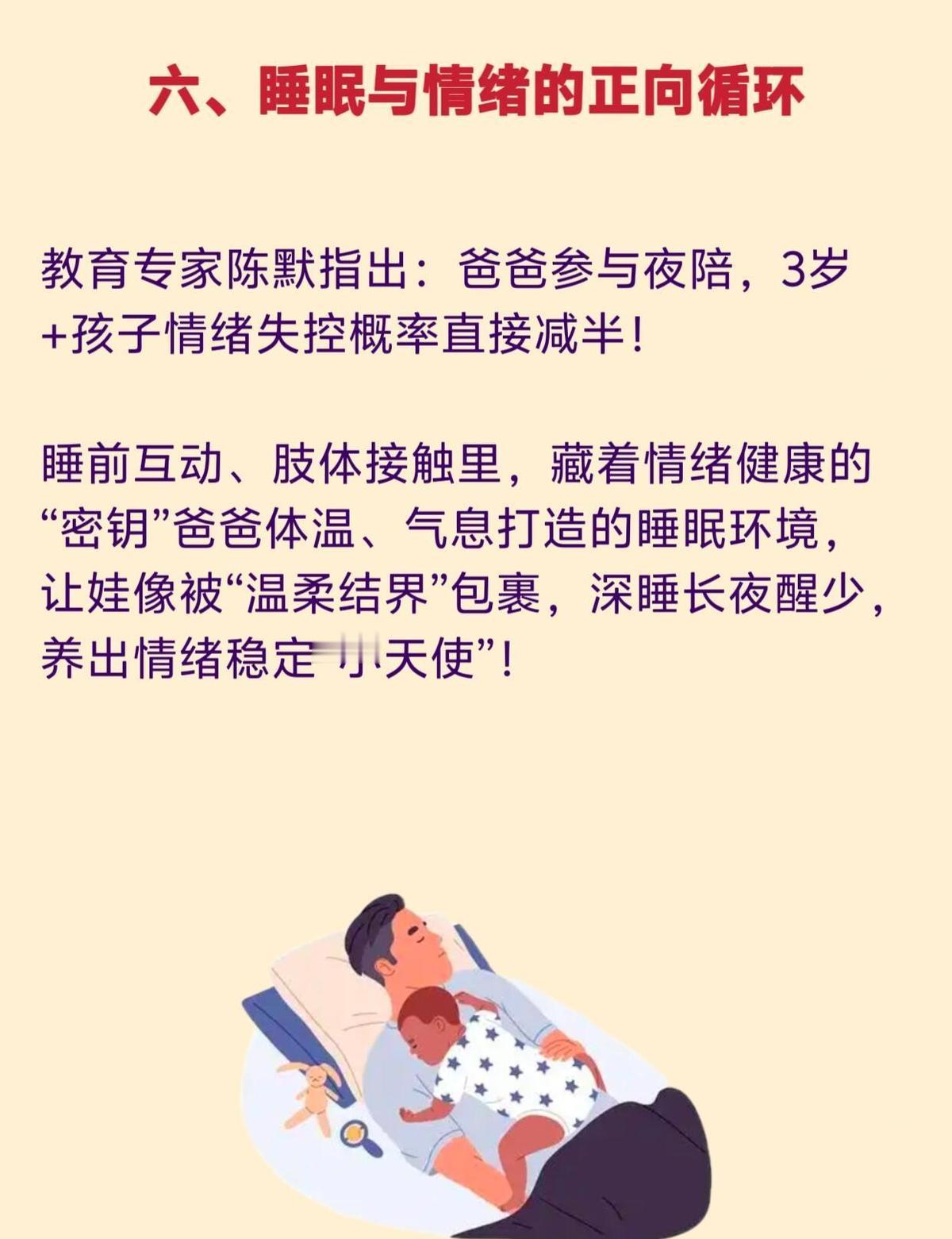 爸爸陪睡的孩子更独立,妈妈陪睡的孩子更安心。 这事儿真不是随便聊聊。 你家孩子是跟妈睡还是跟爸睡? 别以为只是习惯问题,背后大有讲究。 研究说了,爸爸陪睡的娃,3岁前执行功能强,情绪稳。 妈妈陪睡的娃,安全感更强,语言发育也快。 别再只盯着妈妈了,爸爸陪睡也有独门绝技。 关键是要适度,别瞎搞。 现在流行“分床不分房”,安全第一。 爸爸陪睡,记得保持50厘米距离,别太亲密。 陪睡不是哄觉那么简单,得有仪式感。 睡前玩点小动作,空间感就来了。 孩子性格不一样,有的适合爸爸,有的偏爱妈妈。 看孩子反应,慢慢调。 别急着否定传统,但也要接受新研究。 育儿没标准答案,只有更适合。 孩子成长,父母都得上。 别把陪睡当成负担,而是亲子时光。 别光顾着自己舒服,孩子需要的是稳定和陪伴。 爸爸别躲,妈妈也别抢。 科学育儿,不是谁陪睡谁就赢。 关键是配合,是用心。