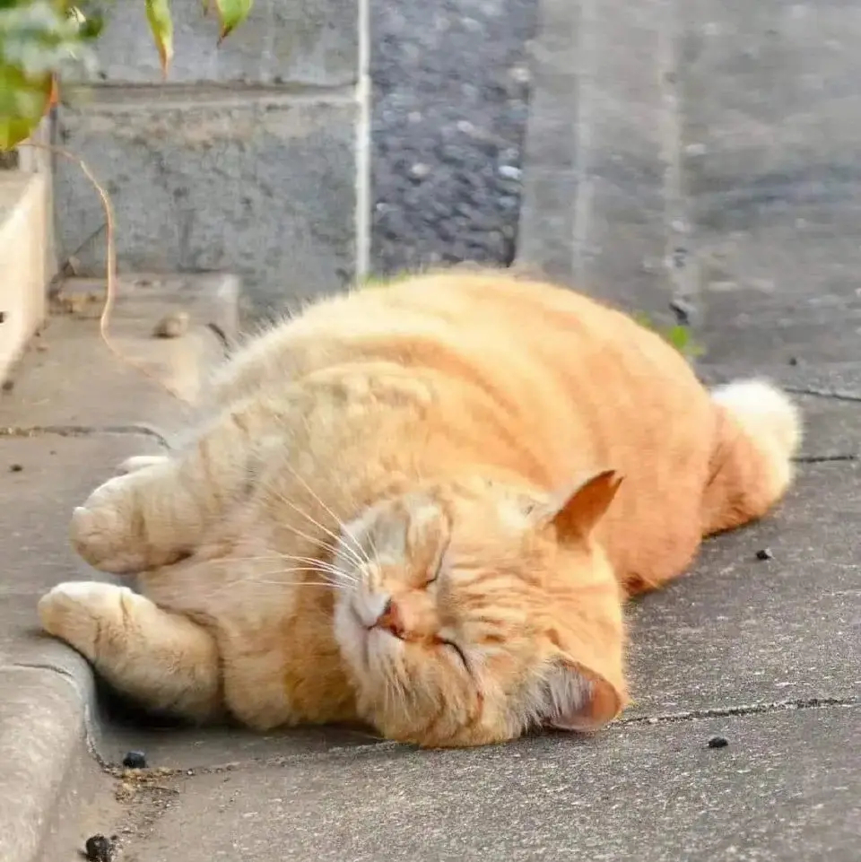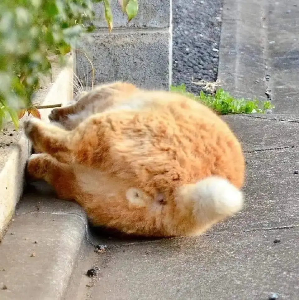 橘猫因贪吃贪睡,性格软萌,深受铲屎官们的喜爱。近日,网友在路边偶遇一只圆滚滚的大橘,正舒服地路边躺着晒太阳,还时不时换个姿势翻着肚皮睡。真的可爱到犯规啦!仔细看猫咪的耳朵有小缺口,是绝育过的猫咪哟。看它那么无忧无虑,状态非常好,一定受到了很好的照顾。真是幸福的小猫咪。也希望所有的流浪小猫都能像这只可爱的小橘猫一样被善待。