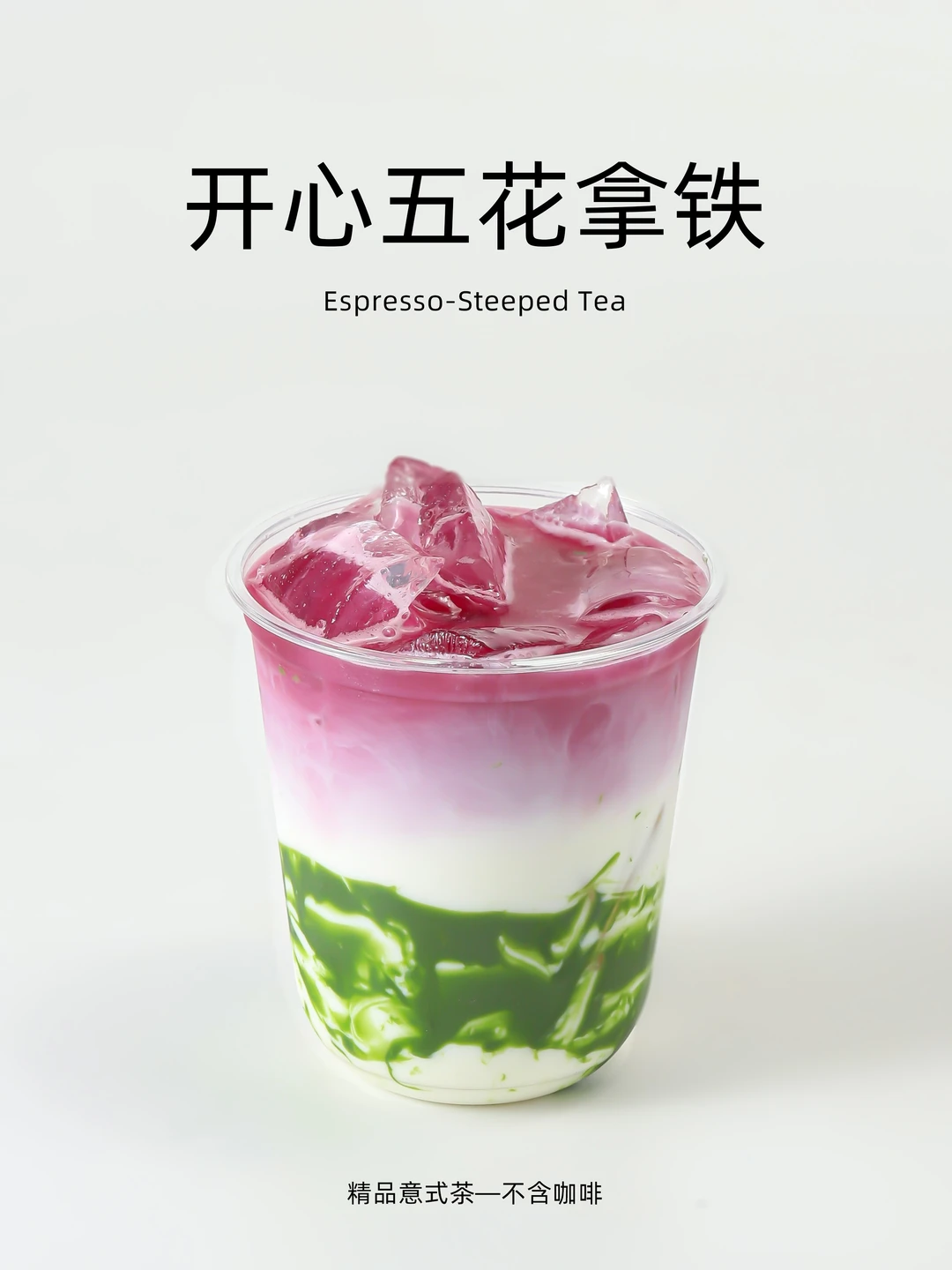 [一R]五花开心拿铁: 1️⃣萃取五花清茶35克备用 2️⃣开心果酱15克,牛奶180毫升,糖浆10毫升,充分搅匀 3️⃣开心果涂抹挂壁,加入冰块150克,倒入2️⃣的牛奶,再倒入1️⃣的五花清茶即可。 [二R]开心玫瑰拿铁 1️⃣萃取波士玫瑰乌龙60克备用 2️⃣开心果酱15克,牛奶180毫升,糖浆10毫升,充分搅匀 3️⃣开心果涂抹挂壁,加入冰块150克,倒入2️⃣的牛奶,再倒入11️⃣的玫瑰乌龙即可。 [三R]开心果抹茶 1️⃣奶油40毫升,白砂糖5克搅匀打发 2️⃣加入开心果酱10克,抹茶3克,牛奶30毫升,充分搅匀 3️⃣步骤2️⃣倒入步骤1️⃣中搅匀 4️⃣杯底开心果挂壁,冰块150,牛奶180,糖浆20,再倒入步骤3️⃣即可。 [四R]开心果拿铁 1️⃣萃取浓缩咖啡20克备用【只能20克】 2️⃣开心果酱15克,牛奶180毫升,糖浆10毫升,充分搅匀 3️⃣开心果涂抹挂壁,加入冰块150克,倒入2️⃣的牛奶,再倒入1的浓缩咖啡即可。