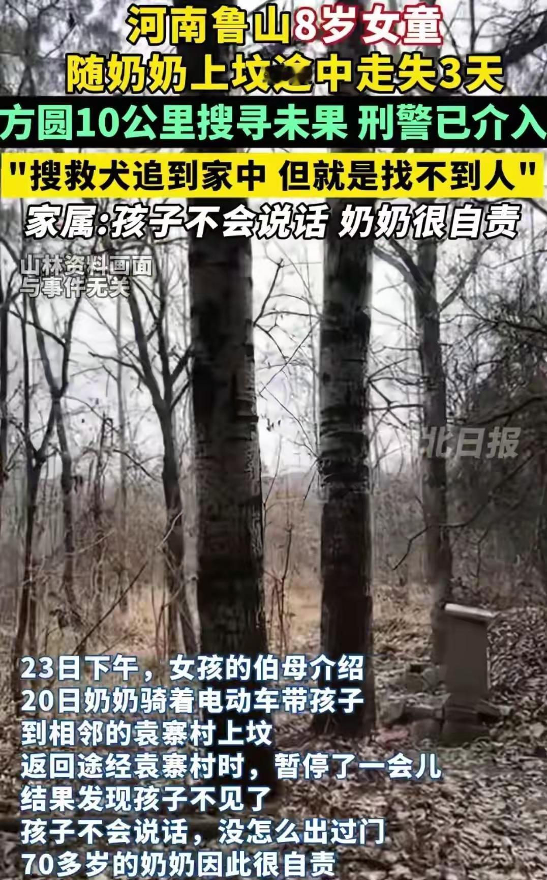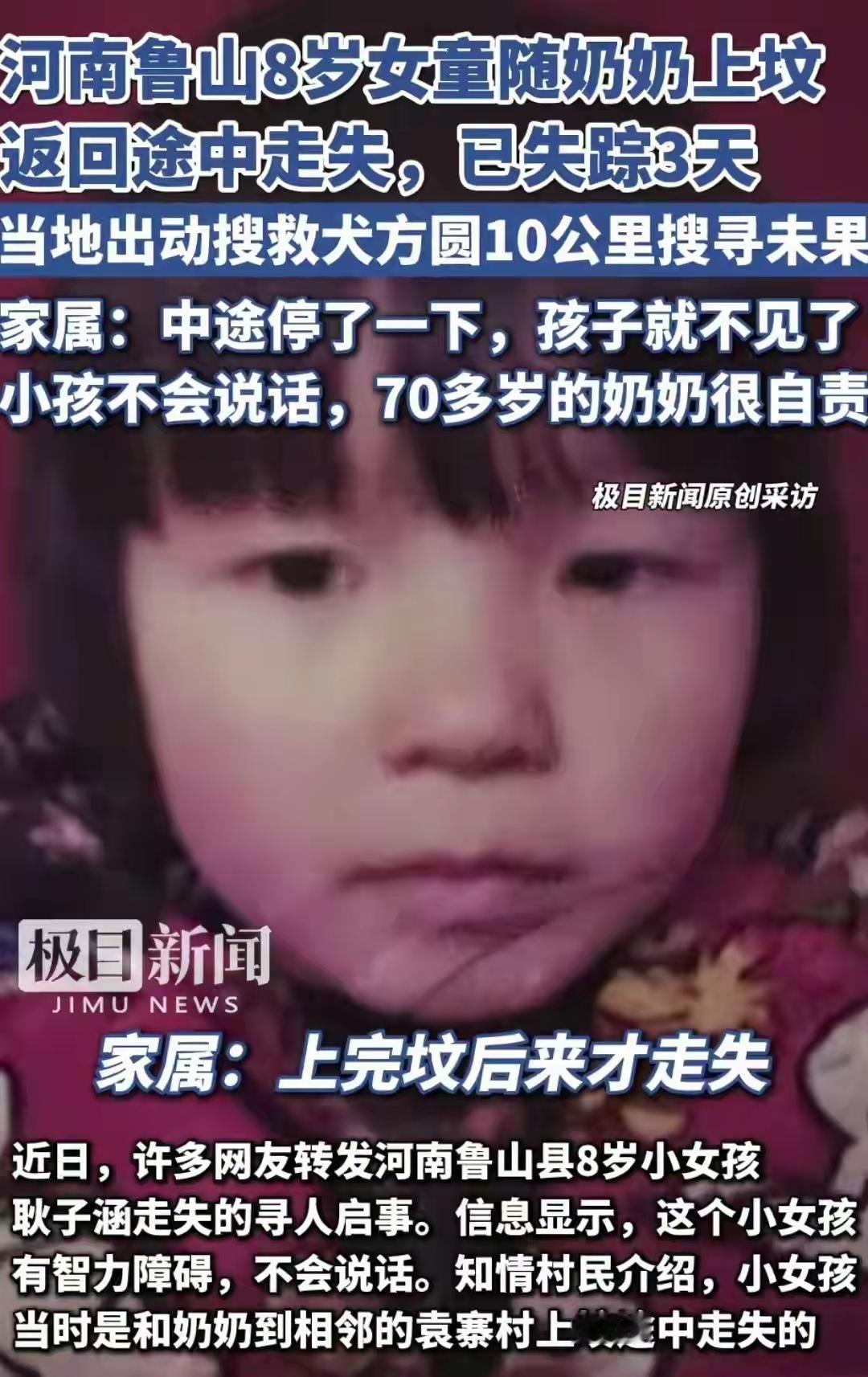 河南鲁山发生件揪心事。上周四傍晚,个奶奶带八岁孙女去野坟上坟,回来时路过袁寨村临时下车方便,把孩子落在电动车上。才三分钟工夫,抬头发现孩子不见了,只在车座留下个粉色发卡。 家属立马组织二三十人翻山越岭找人,附近村民也加入搜寻队伍。玉米地比人还高,巷子弯弯曲曲的,找了整宿没影儿。后来警察来了,警犬跟着孩子衣服跑,结果直接朝她家方向走,但人还没找到。 这是一则令人揪心的消息,也是一面折射出社会种种问题的镜子。一个八岁的孩子,天真无邪地跟着奶奶上坟,结果却在短暂的几分钟内失踪,留下粉色的发卡,成为最沉重的线索。这不仅仅是一场寻人行动,更是一场对家庭、对社会责任的深刻反思。 在这个信息高速流转的时代,我们是否还在用心守护那些最脆弱的角落?孩子的安全,难道就只是一句口号?谁都知道,孩子的成长需要一个安全的环境,可现实中,许多家庭的安全意识和保护措施还远远不够。奶奶的疏忽,或许只是一个瞬间的失误,但背后折射出的是家庭对安全的忽视和社会的监管漏洞。 更令人心痛的是,这次寻人过程中暴露出的诸多问题:山高路远,村庄偏远,信息闭塞,搜寻不易。我们习惯了城市的便利,却忽视了乡村的隐患。那些高耸的玉米地、弯弯曲曲的巷道,似乎成了孩子们的“迷宫”。这不禁让人反思:我们的社会是否对偏远地区的儿童安全投入足够的关注?是否有一套完善的机制保障他们的安全? 而更深层次的,是人性在危机时刻的展现。在绝望的等待中,家属的焦虑、邻里的团结、警方的努力,交织出一幅人性的光辉与阴影。有人责怪“为什么没有及时发现孩子的失踪?”有人为孩子的生命祈祷,有人反思:我们是否真正理解了“守护”二字的意义?这场失踪事件,或许让我们重新审视了家庭责任、社区合作以及社会公共安全的责任。 这件事不仅让人心碎,也引发了无数人的共鸣。每一个父母都在心底暗暗发誓:不让任何一个孩子成为“失踪的孩子”。每一个社区都在反思:我们是否为孩子们筑起了坚实的安全网?每一份善意都值得被铭记,每一次疏漏都应成为警醒。 或许,这个故事的背后,是无数家庭共同的心声:我们渴望一个更安全、更温暖的社会。而我们每个人,都是守护这片土地、守护每一个天真无邪生命的责任人。让我们从这次事件中汲取教训,携手同行,为孩子们撑起一片晴空。因为,孩子的笑脸,永远值得我们用心守护。上坟奇闻 扫墓怪事