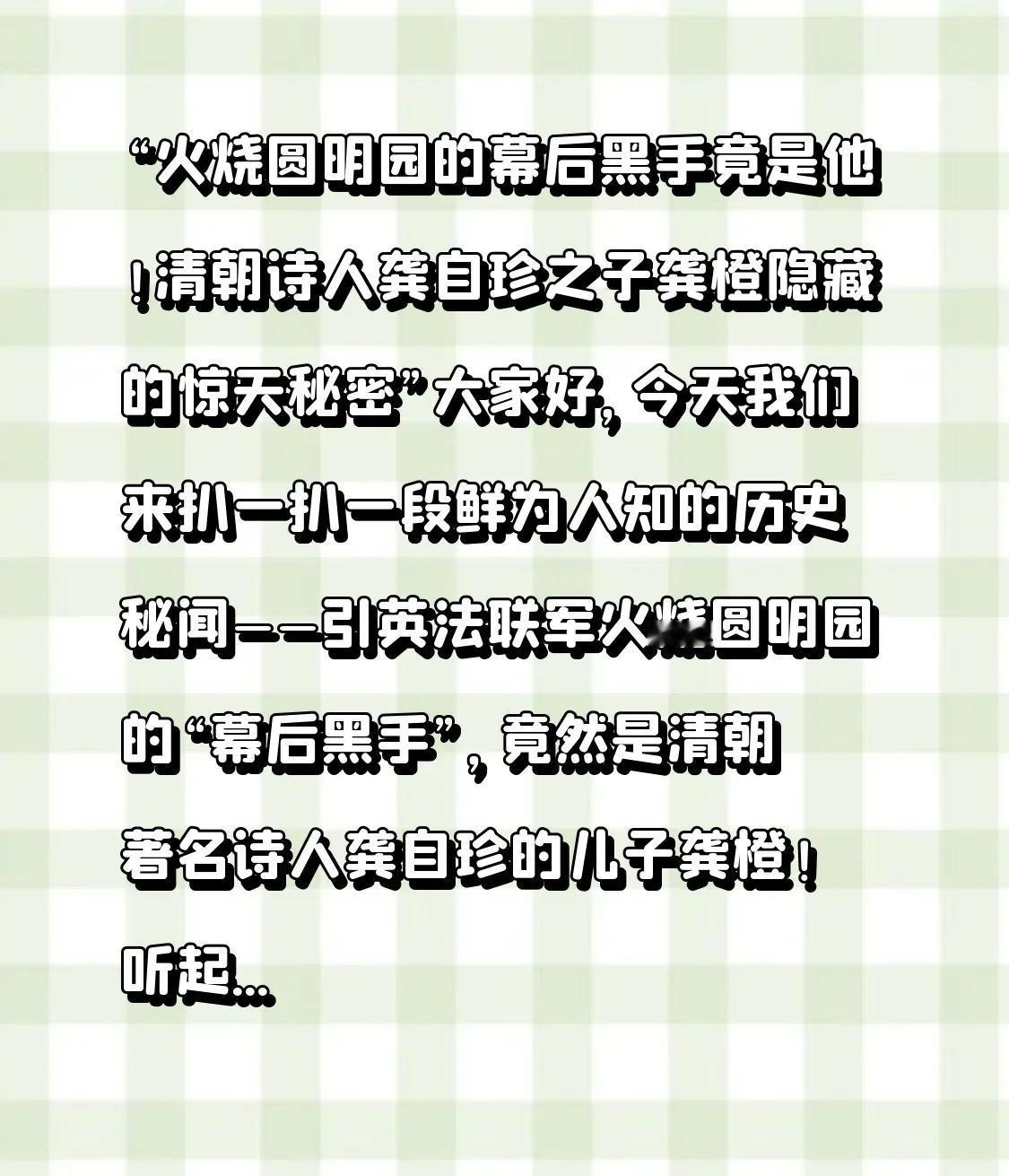 【爆款标题】:竟然是他!清朝“诗坛天才”之子竟火烧圆明园,真相背后藏着怎样的秘密? 大家好,今天我将为大家揭开一段令人震惊的历史“野史秘闻”。这不仅仅是一段关于火烧圆明园的普通叙述,而是隐藏在历史尘埃中的一段鲜为人知的秘密。你是否曾经疑惑,1860年那场惊天动地的火灾,究竟背后隐藏着怎样的秘密?有人说,是英法联军的野蛮侵略,也有人猜测,是清政府内部的权力斗争。而今天我要告诉你的是,或许事情比我们想象得更加复杂——竟然有传言称,清朝著名诗人龚自珍的儿子龚橙,竟然与火烧圆明园事件扯上了关系,而且,真相背后似乎还藏着一些令人匪夷所思的秘密。 准备好了吗?让我们一同穿越时空的迷雾,探寻那段尘封已久的秘密。 一、圆明园的火光与“诗人之子”的意外联系 1860年,随着英法联军的铁蹄踏入北京城,火光冲天,圆明园瞬间化为一片废墟。这场浩劫震惊中外,成为中国近代史上一段无法磨灭的惨痛记忆。许多人认为,这是“洋人侵略”的直接结果,是列强对中国的掠夺与羞辱。然而,除了外部侵略的原因之外,是否还隐藏着一些不为人知的秘密?比如,有传言说,火灾的背后,竟然与一位清朝诗坛巨匠的儿子有关。 这位“诗人之子”,便是龚自珍的儿子龚橙。据史料记载,龚自珍(1792-1841)是清朝末年的著名诗人、思想家,他的诗风豪放激昂,善于抒发爱国情怀。其诗作多抒写国家兴亡、个人命运,具有强烈的时代责任感。龚自珍虽然早逝,但其思想与作品影响深远,被誉为“晚清第一思想家”。 而龚自珍的儿子龚橙,生于1820年代,是一位颇具天赋的青年诗人。他不仅继承了父亲的诗风,还在文学创作上表现出非凡的才华。有人说,龚橙性格偏执,有些怪异,喜欢用诗歌抒发内心的愤懑与抗争。据传,他曾在一次诗会中提出“焚我华夏园林,祭奠国家之愁”的激烈言辞,令人毛骨悚然。 二、龚橙的“奇特”行为:火烧圆明园的“幕后推手”? 关于龚橙与火烧圆明园的关系,最令人震惊的传言是,他曾在一首诗中暗示要用火焚毁圆明园,以“祭奠国家之愁”。这首诗的内容充满激烈的爱国情感,但也带有一些奇异的象征意味。据说,他在诗中写道:“焚我华夏园林,犹如焚我心头愁。”有人解读为,他对国家的忧愁极度深重,甚至愿意以极端的方式表达。 更为神秘的是,传言称,龚橙曾经参与过一些秘密的“抗争行动”,试图唤醒民众的爱国心,甚至有人猜测,他在暗中策划一场“以火抗敌”的行动,以此表达对外来侵略的愤怒。虽然没有确凿的证据证明他直接参与了火烧圆明园的行动,但一些人相信,他的诗作和思想,暗示了他对国家命运的深刻关切。 此外,有传闻指出,龚橙曾在一首诗中写过一句“焚我华夏园林,犹如焚我心头愁”,这句诗被一些研究者解读为“预言”或“暗示”。难道他真的具有某种“预知未来”的能力?还是他在某种“精神错乱”的状态下,表达了自己对国家命运的焦虑? 三、真相?还是“神话”? 当然,主流历史学界普遍认为,这些传言大多是后人杜撰或夸张的结果。没有任何可靠的史料显示,龚自珍的儿子龚橙曾参与或策划火烧圆明园的行动。实际上,圆明园的火灾主要是由英法联军在掠夺过程中放火所致,背后涉及复杂的政治、军事和外交因素。 然而,这些“野史秘闻”也反映出人们对那段历史的无限想象和文化的丰富性。将一位诗人之子神话成“幕后黑手”,既是一种戏谑,也是一种对历史真相的另类解读。古代的“野史”常常夹杂着传奇色彩,它们像一层层迷雾,既遮蔽了真相,也丰富了历史的想象空间。 四、文化的“调味料”:野史中的历史趣味 实际上,历史从来都不是简单的黑白二色。它像一幅丰富多彩的画卷,交织着真实、传说、神话和想象。那些被后人编造的“野史”,虽带有戏谑和夸张的成分,但也反映了人们对历史的热爱和探索。 比如,关于火烧圆明园的传说中,有人说,火光中隐约出现了“神秘的身影”,有人相信,火灾背后隐藏着“古老的秘密”。这些传说,虽然缺乏确凿的证据,却让历史变得更加生动有趣。 五、总结:真相永远比故事更精彩 归根结底,圆明园的火灾是一场多因素交织的悲剧。它既是外来侵略的结果,也是中国内部政治腐败、军事薄弱的体现。而那些“野史秘闻”,虽带点戏谑,却也提醒我们:历史从不简单,它充满了未知和想象。 我们应当以史为鉴,理性看待各种传说和猜测。毕竟,真相或许比故事更精彩、更复杂。每一段历史,都值得我们用心去探索,用理性去解读。 如果你喜欢这篇“荒诞又精彩”的野史秘闻,记得点赞、转发,让更多人一起来“挖掘”那些被尘封的历史秘密!历史的迷雾中,或许藏着你意想不到的真相。圆明园到底是谁烧毁的