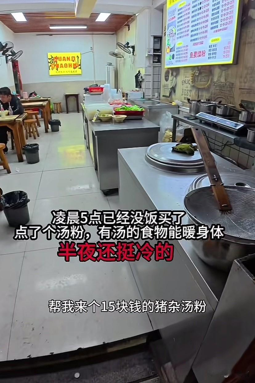 广东广州,凌晨五点,男子骑着电动车在回家的路上。在他路过一处天桥时,看到一个大叔睡在桥底并在哭泣。 男子觉得奇怪,心里想大叔是不是遇到了什么难事?于是,男子停下电动车,他问大叔怎么了?大叔说肚子饿得有点受不了。 得知大叔在挨饿,男子对他说:那你等我一下,我去给你买点吃的。因为是凌晨五点,街上很多店铺已经关门休息。 男子找了一圈,找到一个早餐店正在营业。但是店里不炒菜吃饭,只是吃粉。男子便给大叔点了一份十五元的猪杂汤粉。他想着有汤水的食物吃下去能够暖胃暖身体。毕竟,广州的早上还是有点冷的。 在男子带着汤粉和一瓶水回到天桥下找大叔时,大叔已经睡着了,男子呼唤大叔他也没有回应。男子只好提着汤粉过去叫醒大叔。 男子把手里的汤粉和瓶装水塞给大叔。大叔半侧着身体起来向男子道谢。这时男子才看清大叔身上只穿着一件短袖。 他心里一紧,广州虽然不是特别冷。但还是有点凉的,自己都已经穿上外套,这大叔睡在天桥下,还穿着短袖,盖的被子也是薄薄的。这怎么御寒? 在聊天中得知,大叔没有固定的住处,平时是走到哪里就住在哪里。男子问大叔为什么不回家?男子称自己单身一人,没有家。 大叔说自己因为年龄大了,工作也不好找,平时的生活来源是靠捡瓶子和纸皮。 听得这话,男子的心里也不好受。但他也只是一个普通人,没有特别大的能耐。他默默的掏出一些现金放到红包里,然后递给大叔。 这红包在本地人的说法里是利是,寓意吉祥,顺顺利利。男子把红包递给大叔,大叔对着男子又是一顿感谢。 男子临走时对大叔说,过几天有时间他会再过来。因为他看到大叔盖的被子太单薄,他想给大叔带个厚一点的被子。