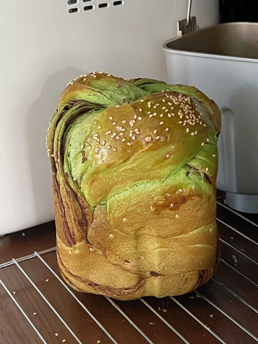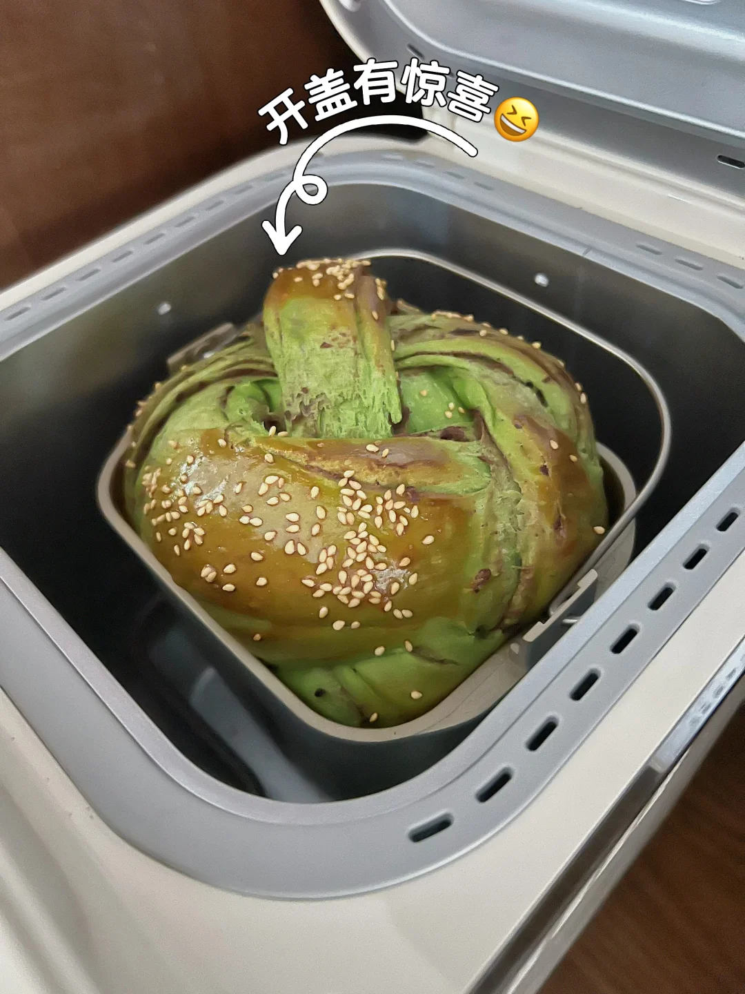 7️⃣发酵模式至八、九分满(今天发了1小时20分钟),刷上鸡蛋液,烘烤35分钟即可