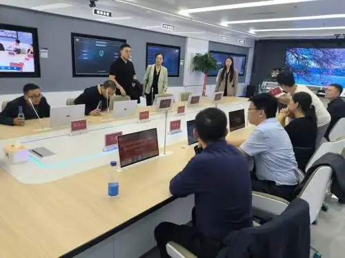 会议伊始,考察团一行走进西安保伦展厅,深入了解智慧会议室、智慧指挥中心、专业视听室、智慧教室、AI智慧体育、智慧文旅、轨道交通、智慧医疗等最新的技术成果及智慧应用。itc陕西营销总监胡华波在陪同参观过程中,详细介绍了公司的业务板块、产业链布局以及强大的科研平台。他指出,西安保伦始终坚持以创新为驱动,不断加大在科研领域的投入,构建完善的研发体系,为企业持续发展提供了坚实的技术支撑。考察团一行认真聆听,驻足观看,对西安保伦系统创新成果和技术研发实力给予充分肯定。