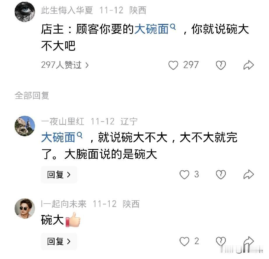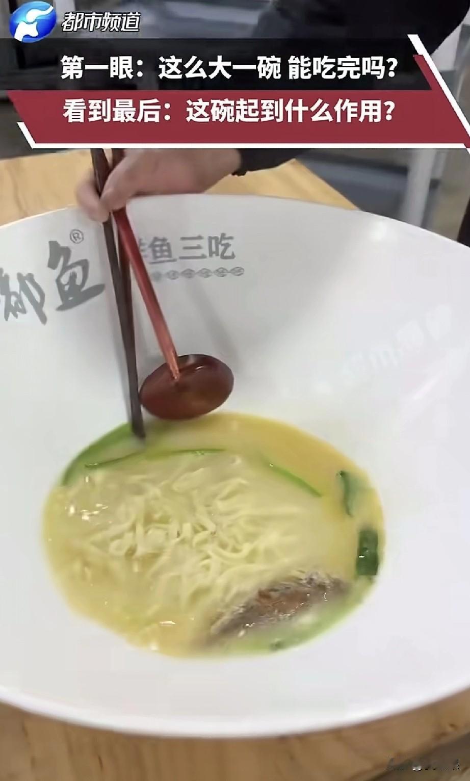 大碗面来啦! 天呐,这么大的碗怎么能吃完呢? 这老板真实在! 等等,话别说太早, 这碗确实不小, 这面,够塞牙缝吗? 噱头,真是噱头, 老板这一招真高啊!