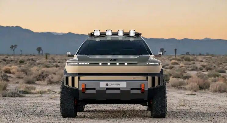 强烈的机甲风格 现代Crater概念车亮相洛杉矶车展 在2025洛杉矶车展上,现代Crater概念车正式迎来首发亮相。 目前,现代集团并没有推出其量产版的计划,更多的是展现现代“XRT”系列未来的设计方向,其更可能应用于IONIQ 5、帕里斯帝等车型的XRT衍生版车型等。 现代Crater概念车外观拥有十分强烈的机甲风格,硬朗的线条、越野探照灯、格挡绳以及33英寸越野轮胎等都表明了其适配的使用场景。 概念车的内饰更加硬核,中央采用贯穿式圆柱设计,中间采用齿轮设计,两侧由绑带链接,上方配备四个可拆卸的显示屏,并可支持自定义显示内容。车内的方向盘和座椅则是完全采用赛化风格,包括后排座椅也同样配备四点式安全带,它还会采用对开门式设计,B柱位置能够看到防滚架。 官方并未公布它的动力系统参数,不过从中控区域我们能够看到它会支持多种驾驶模式,并且还会配备分动箱。 点个关注吧!汽节车社,车圈热点资讯每日一扫清!【来自懂车帝车友圈】