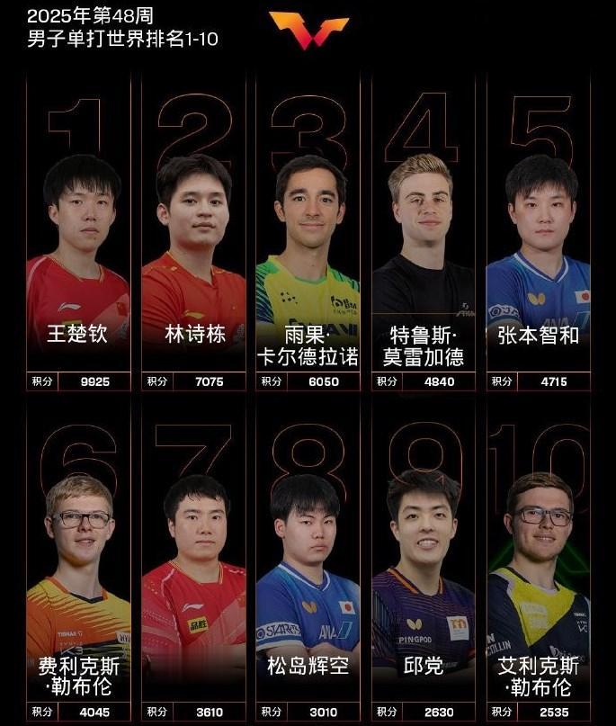 虎扑11月25日讯11月25日,国际乒联更新最新一期男单世界排名。