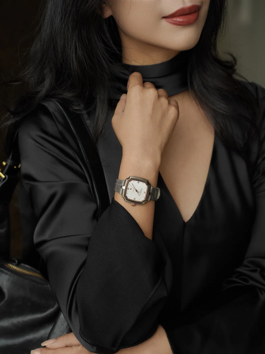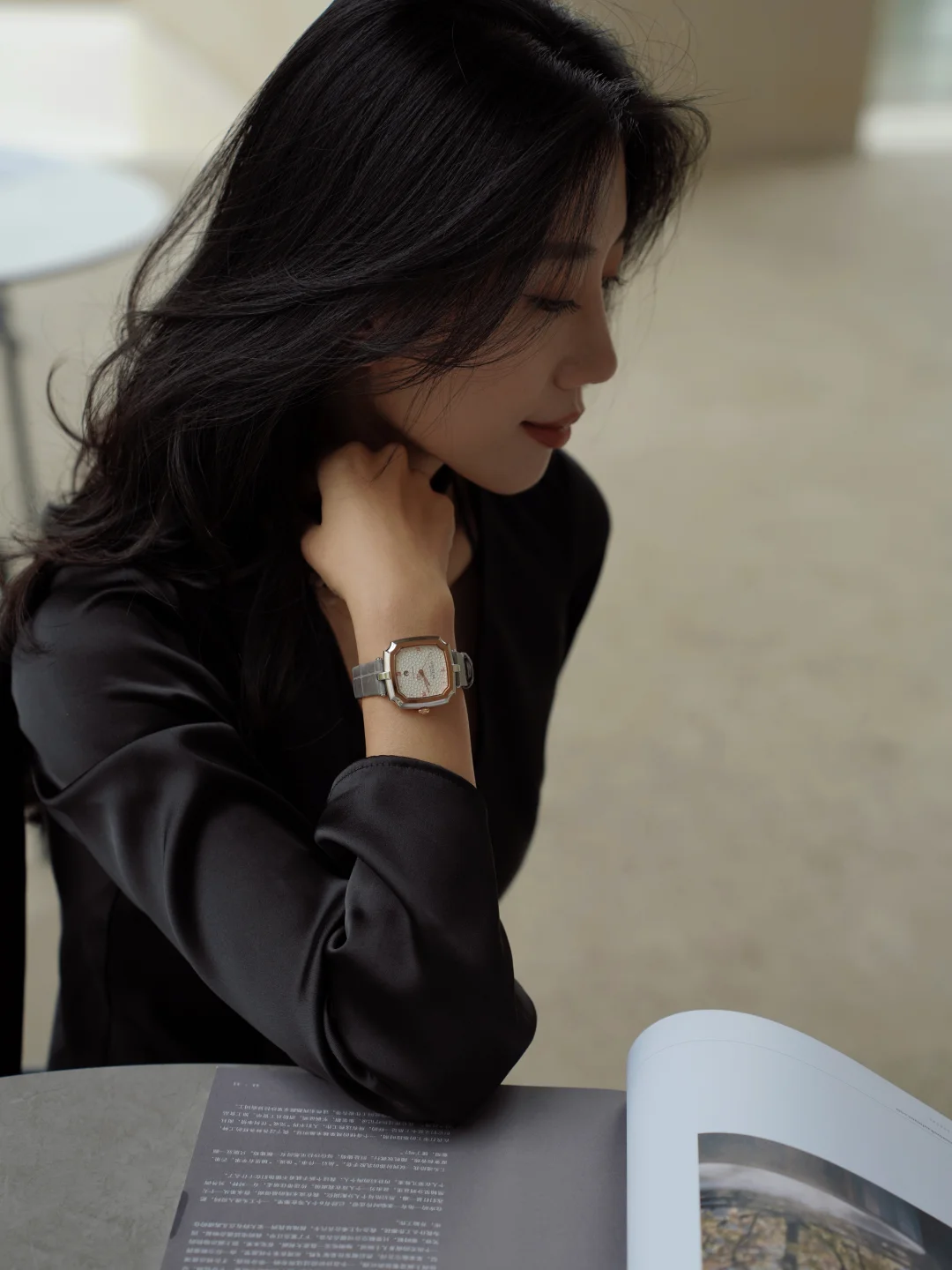 亦非普通皮革那般沉闷,而是以温润的触感包裹腕部,恰好适配秋冬的厚重衣物,不硌肤也不抢眼。