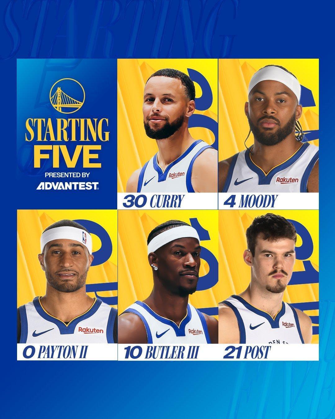 本场先发名单,赛季第九次先发,加油勇士名单变动两人佩顿代替追梦打先发四号位以及波