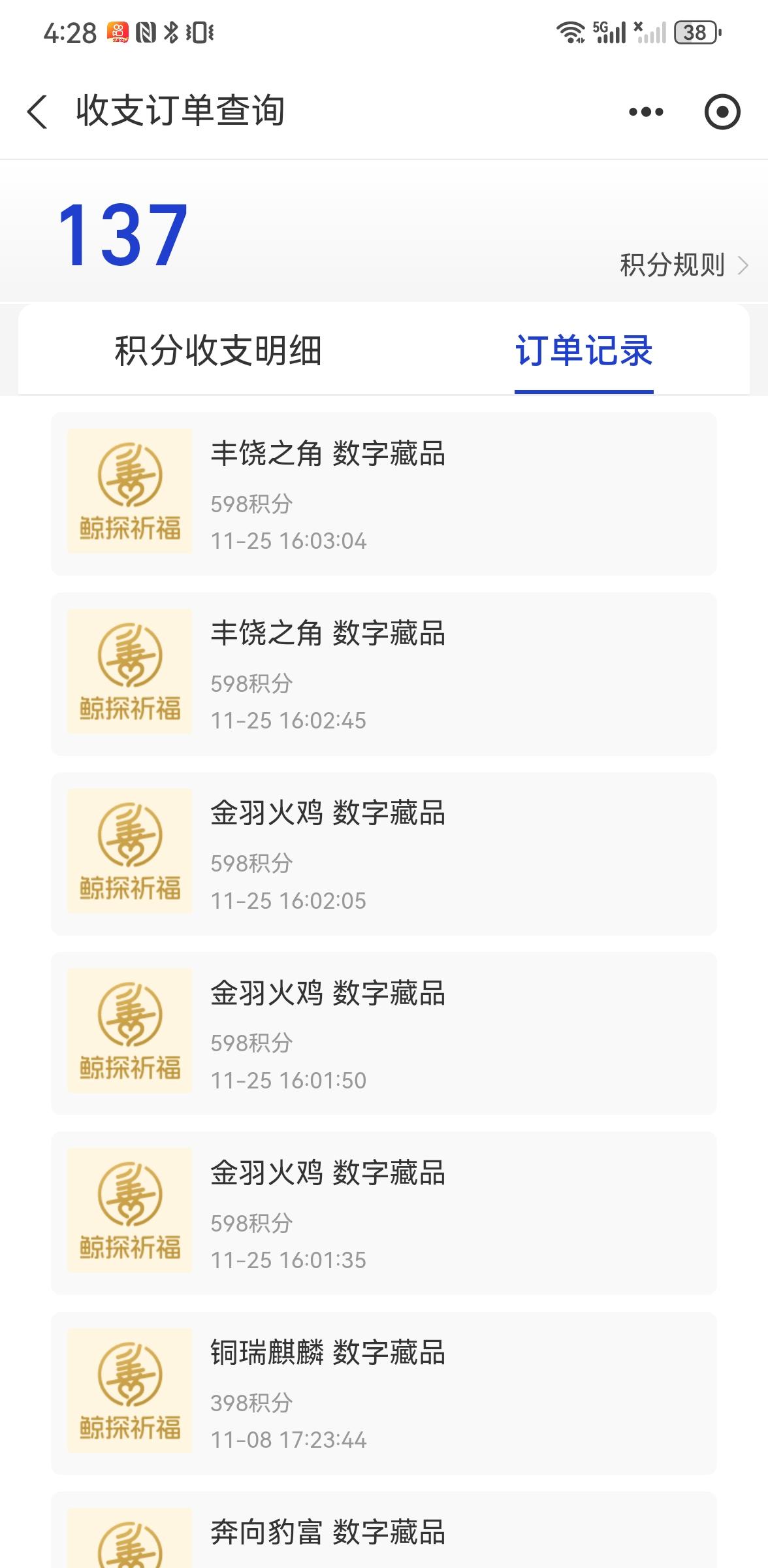 攒了好久的支付宝积分,终于等到出新了,赶紧兑换,可以大公鸡只能兑换三个,不然可以
