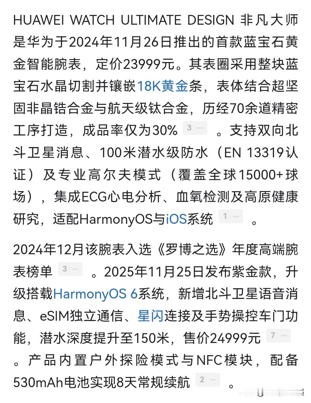 厉害了啊,不愧是非凡大师手表啊。 这价格高达24999元。 这价钱对得起非凡大师4个字。 华为也是过上好日子了。 这价钱跟劳力士比,那肯定是华为的手表更有性价比,毕竟蕴含着高科技。 不过这手表要充电啊。