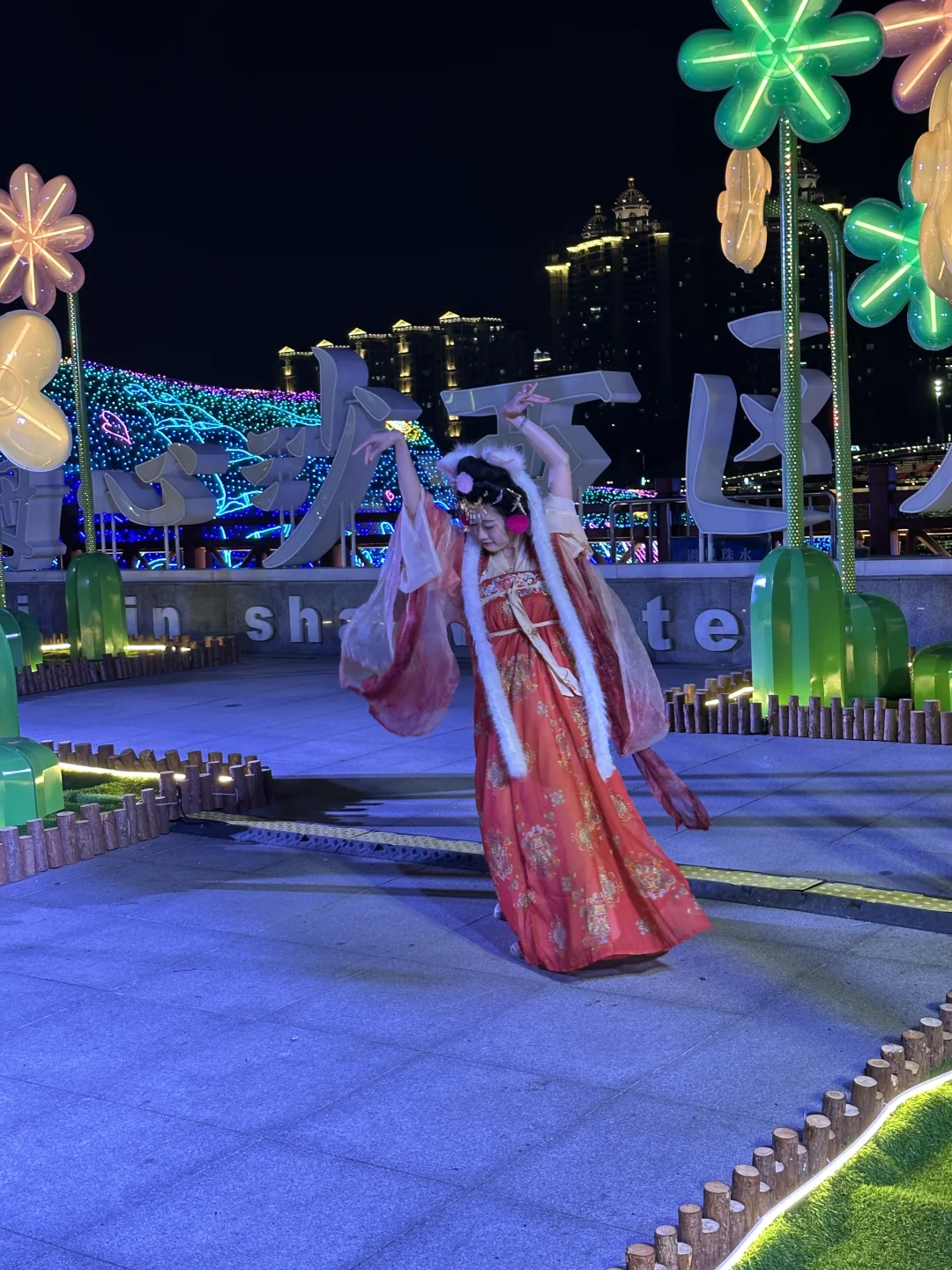 往前走就是民族舞表演!漂亮小姐姐们在海心沙西区跳古典舞,裙摆翻飞、舞姿柔美,还会主动和观众击掌互动~ 我伸手和小姐姐击掌的瞬间,心跳都漏了一拍!🥰 人生第一次和表演者线下互动,这种双向奔赴的快乐真的很难得。