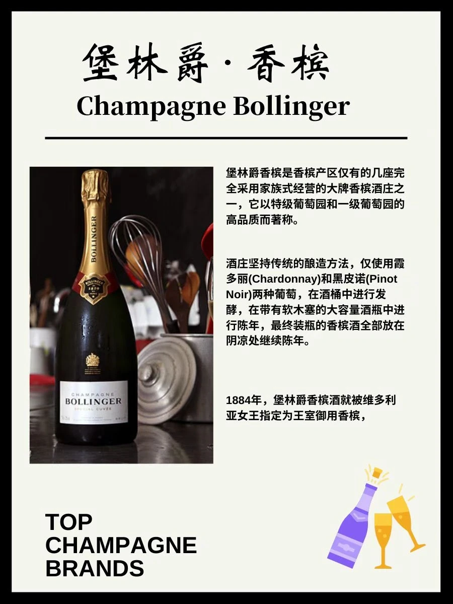 🥂伯兰爵爵香槟是香槟区仅有的几座完全采用家族式经营的大牌香槟酒庄之一。酒庄坚持传统的酿造方法,仅使用霞多丽和黑皮诺两种葡萄,1884年,堡林爵香槟酒就被维多利亚女王指定为王室御用香槟。