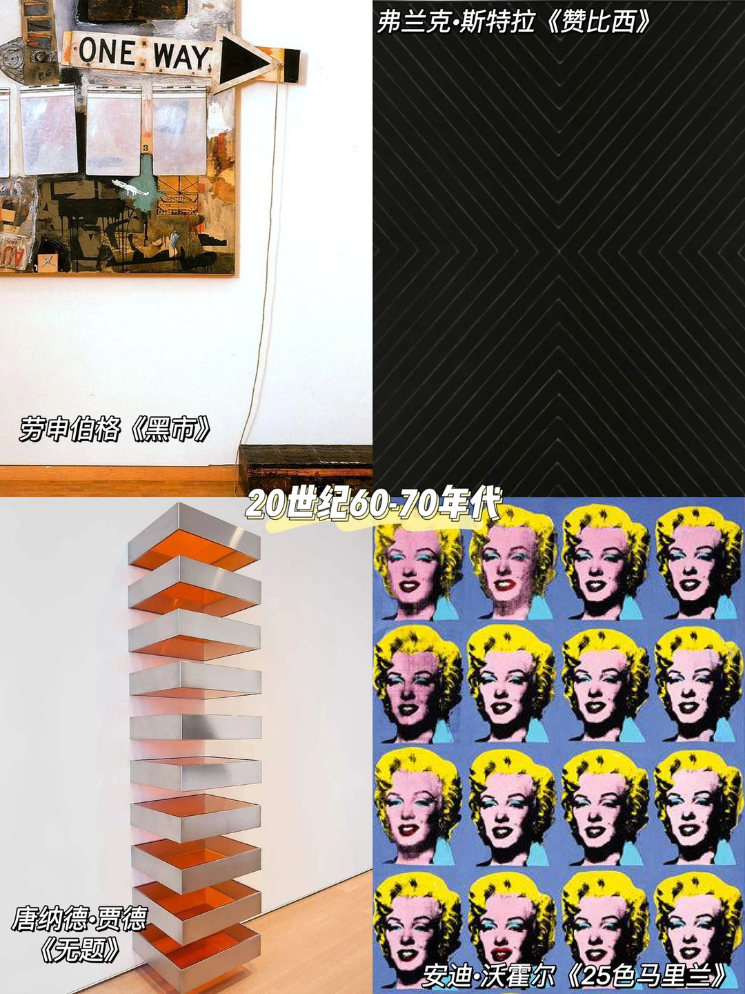 🔹60-70年代,反抽象表现主义的新达达、消费大众文化的波普、强调艺术客观性的极少主义、把思想当做艺术本身的观念艺术在美国轮番上场。