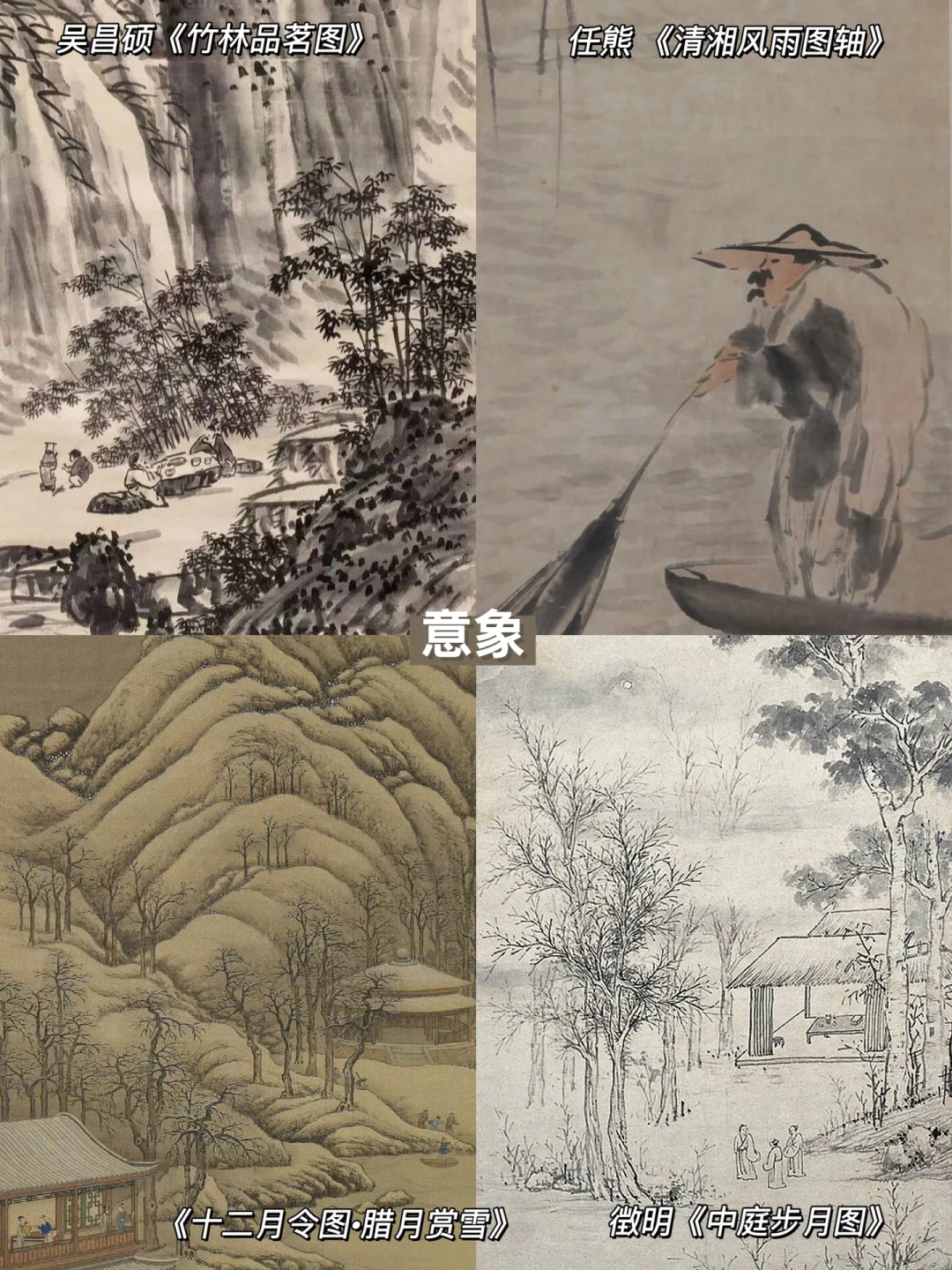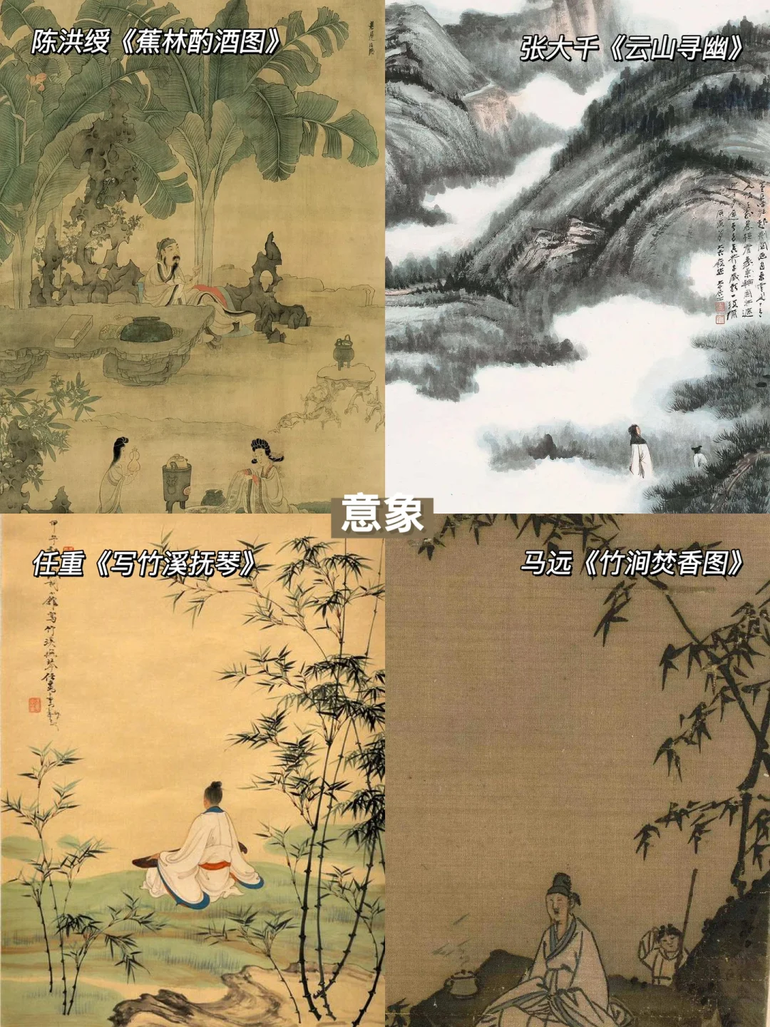 🔹但光有景不行,还需人的想象与寄情,这叫意象。例如漫山野菊是景,而陶渊明的采菊东篱下,让菊有了淡泊闲适之美。秋山松林是景,而张籍的溪头看月出深松,让松有了萧瑟孤寂之美。