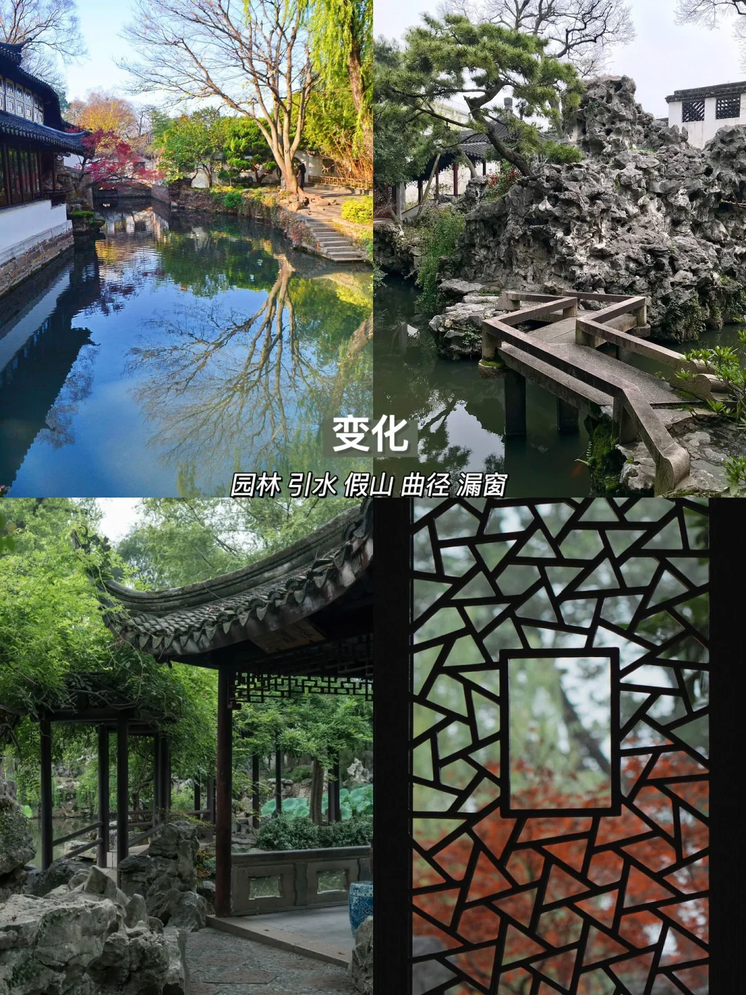 🔹不过美总是需要变化的,比如园林,假山奇巧、池水绵延、长廊曲折、木石遮挡、花窗漏光,是稳中求变、层次丰富的典范。