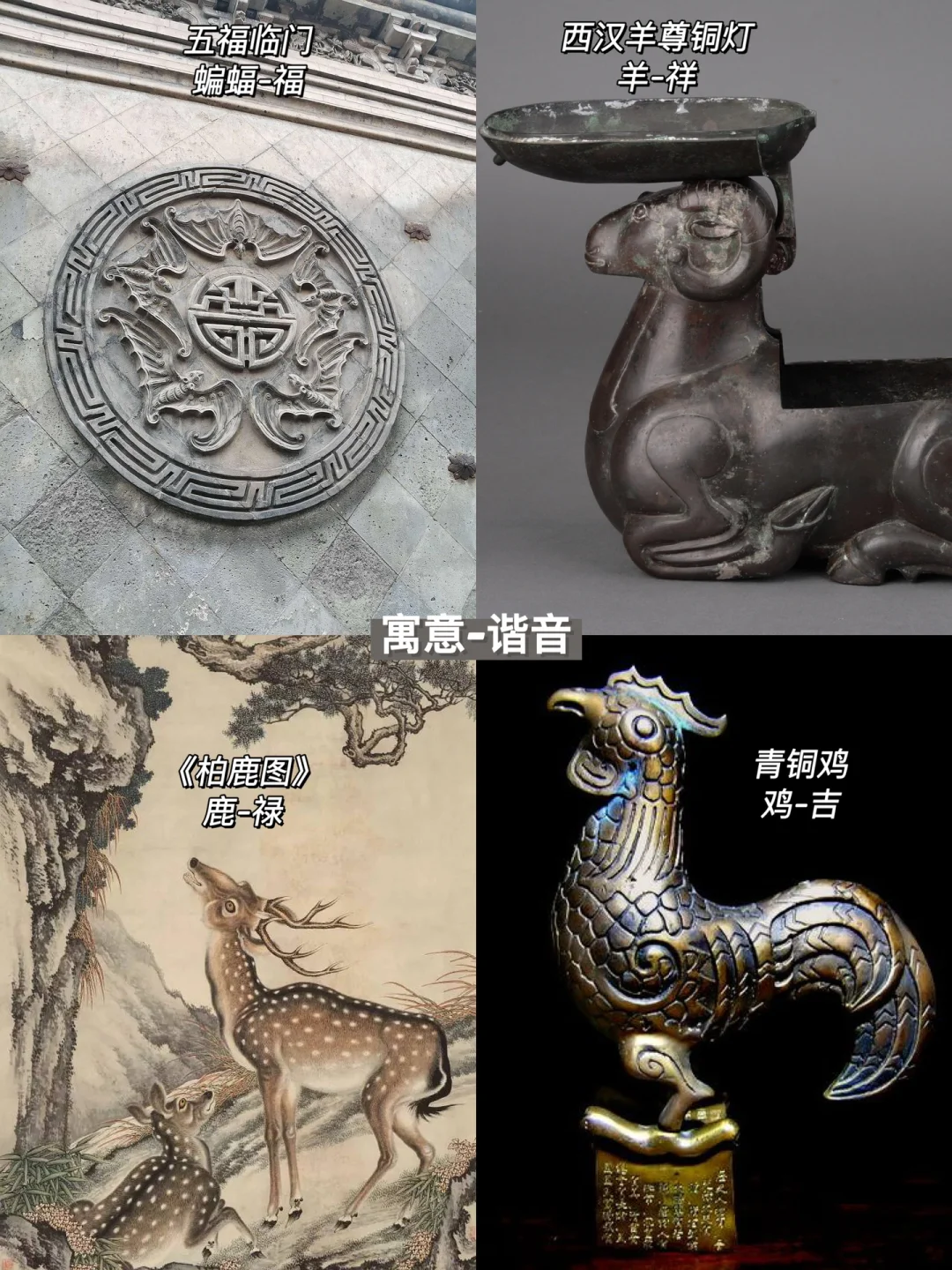 -更常见的,还有文人爱梅兰竹菊的傲幽坚淡。百姓爱羊与祥、蝠与福、鹿与禄、鸡与吉等物件的谐音吉祥。