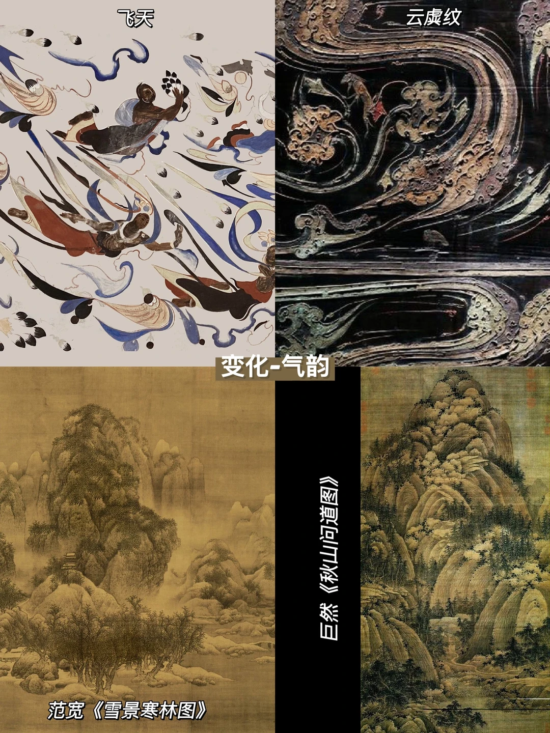 -画中的变化被称作气韵,它是有律动、有节奏的美。像是飞天、浪花、龙纹、卷云、雾霭、曲径、茂林,呈现出自然生息与人类情感的完美契合。