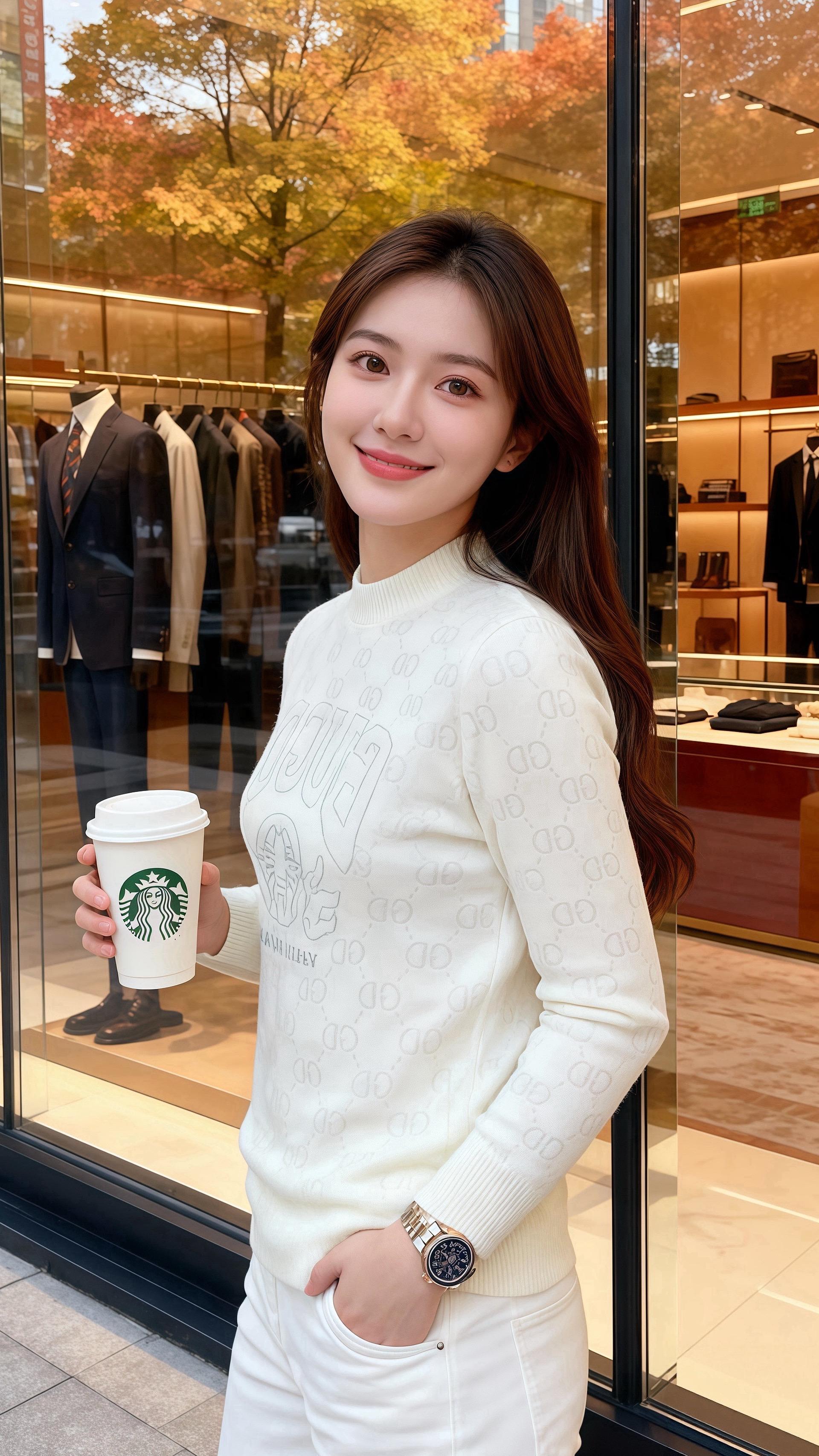 许妍抱着星巴克纸杯站在男装店橱窗前时,皓明刚从试衣间出来。